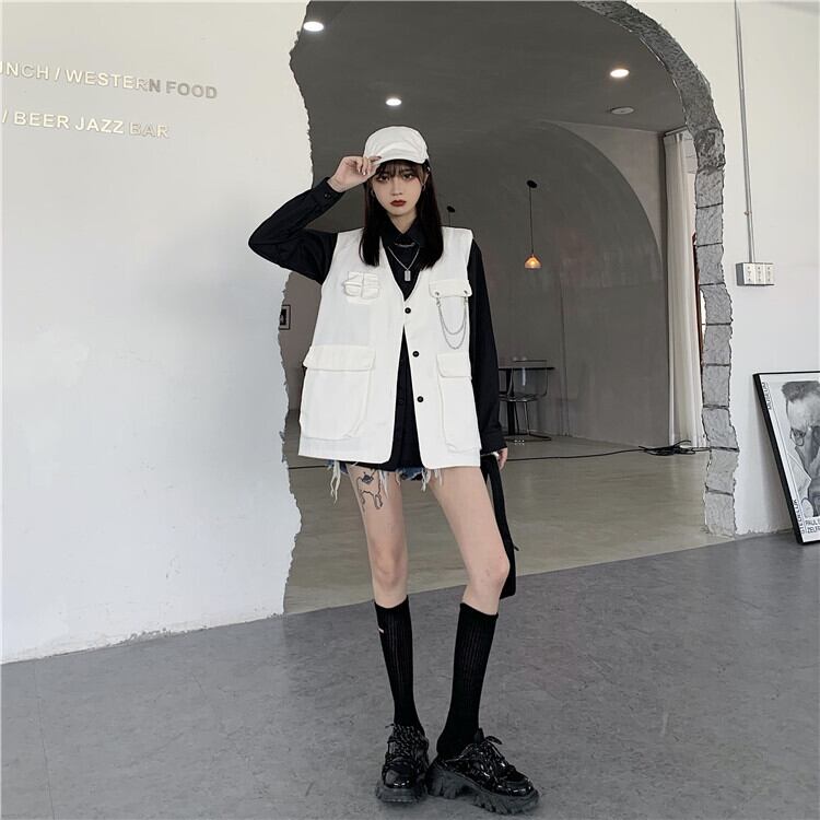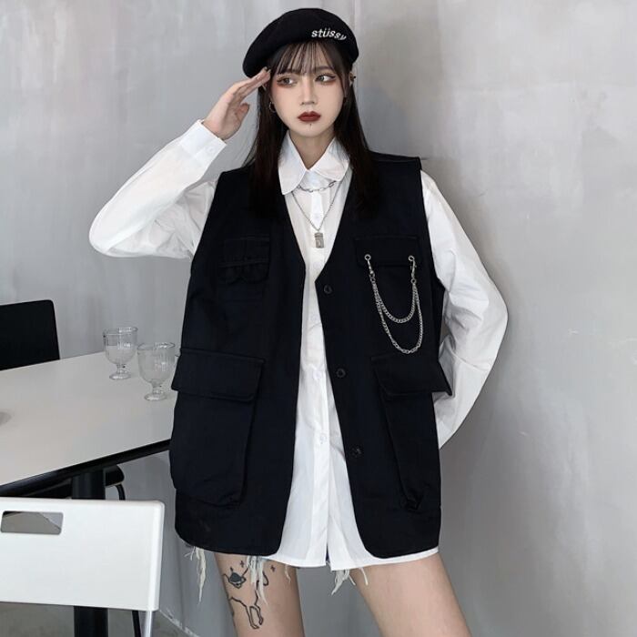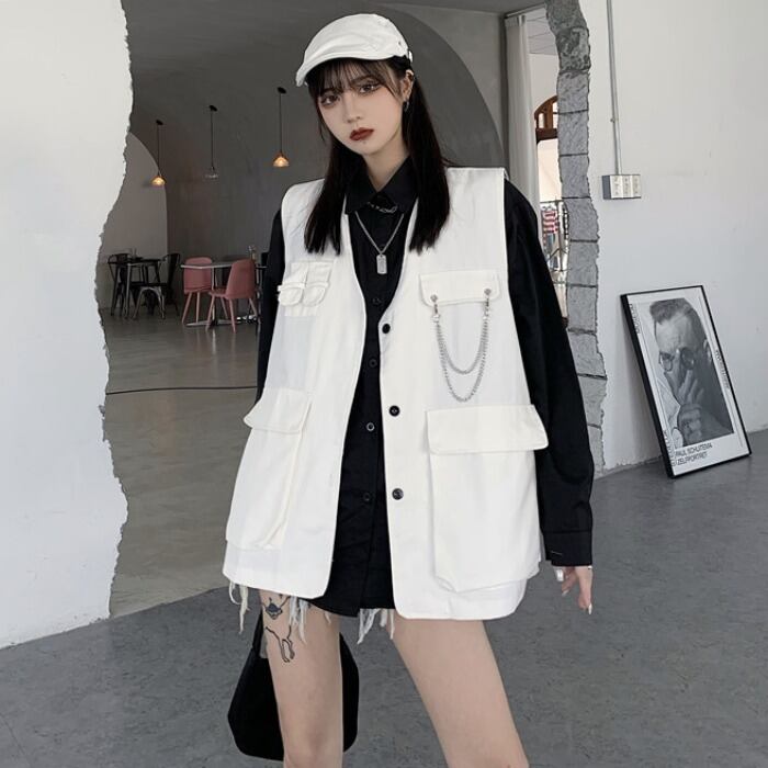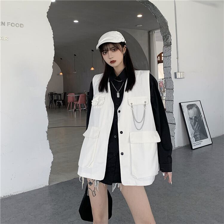 色:白いベスト+チェーン,黒のベスト+チェーン,白シャツ+チェーン,黒シャツ+チェーン