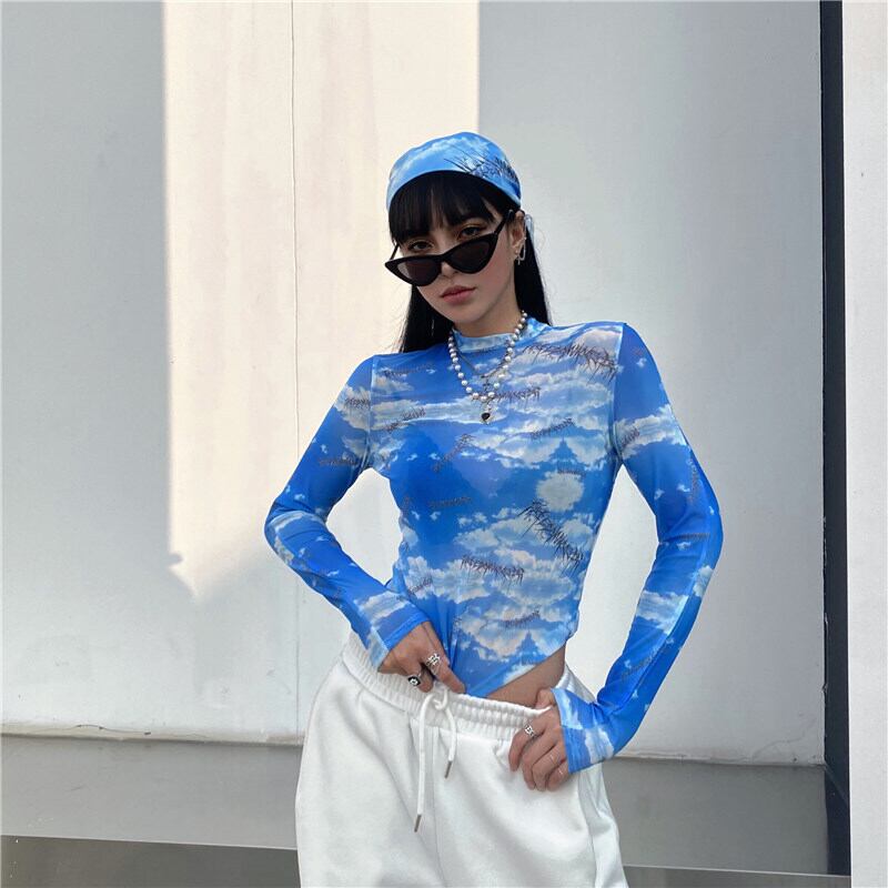 Tシャツシャツ レディース夏服韓国ファッショントレンドスタンダードプリントメッシュトップス ゆったり ロング レトロ 夏物 スタイル 長袖 Studios48393738862