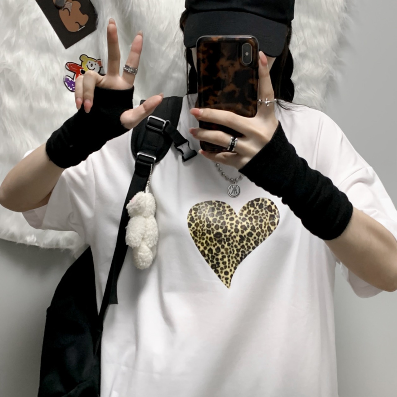 夏服韓国ファッショントレンドハートレオパードプリント柄ルーズカジュアルラウンドネック半袖スリーブTシャツレディース ショート ハーフスリーブ 夏物 Oネック スタイル Studios59391592558