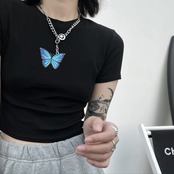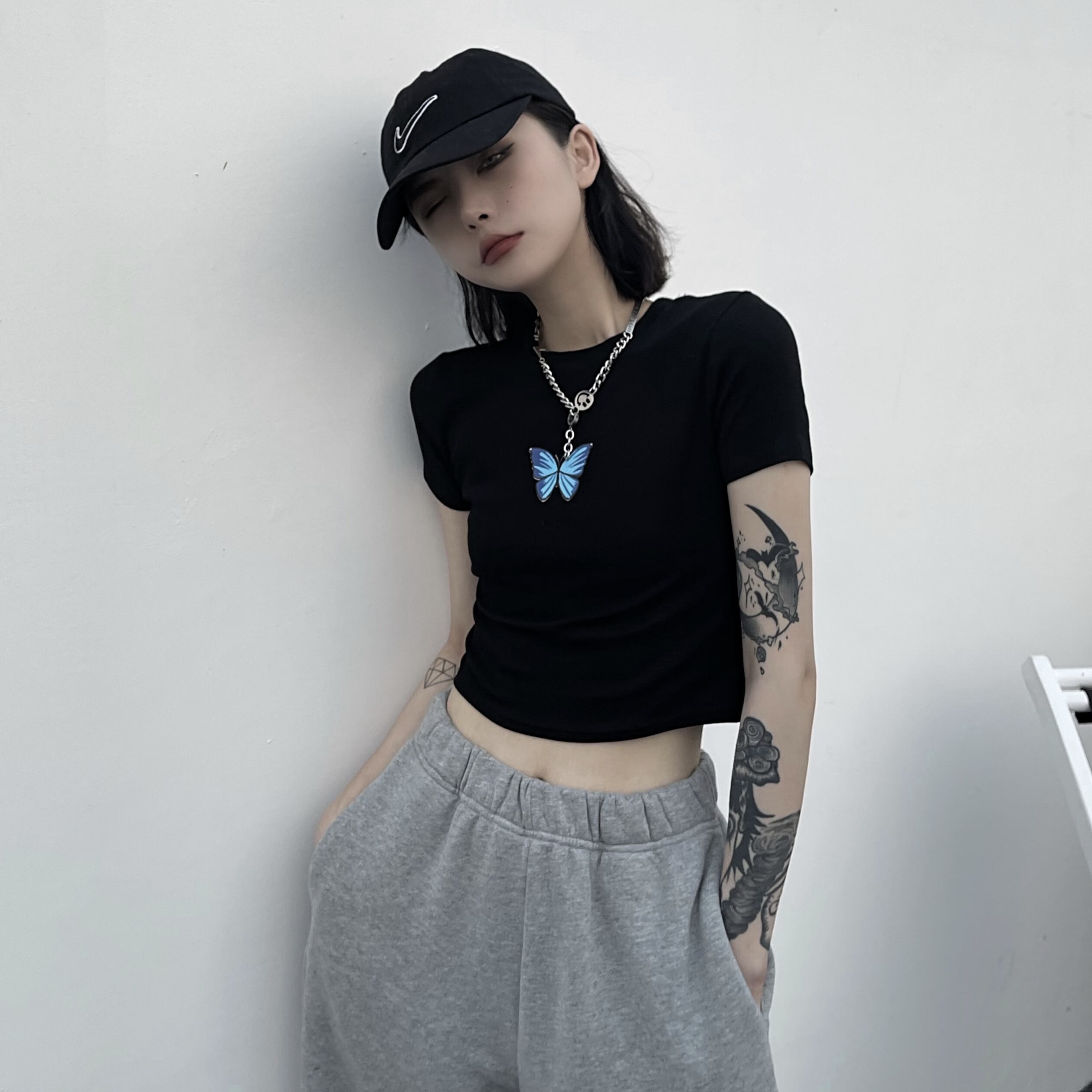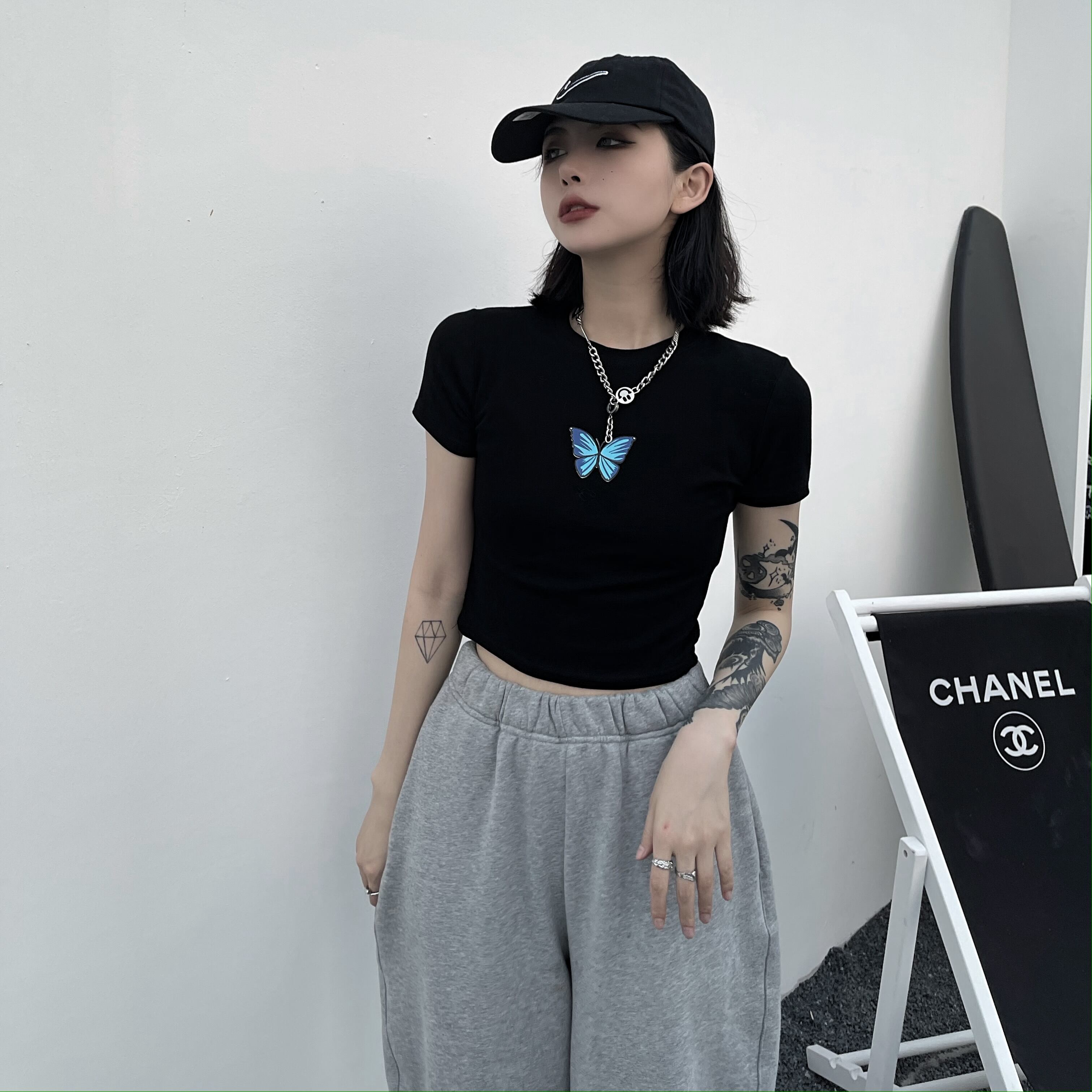 ショートジャケット レディース夏服韓国ファッショントレンドスタンダードButterflyデザイン プリント柄スリムTシャツ レトロ 夏物 スタイル Studios17311197939
