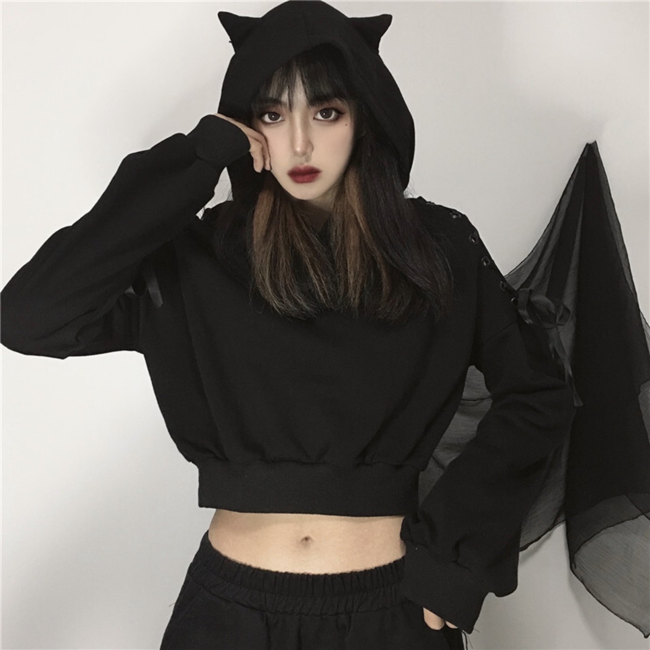 秋物ウィンター韓国ファッショントレンドダークストラップレスレースショートスリム薄手トップス フードセーター レディース ストリート オータム 冬物 Studios72873395008 | pLegLad Studios