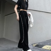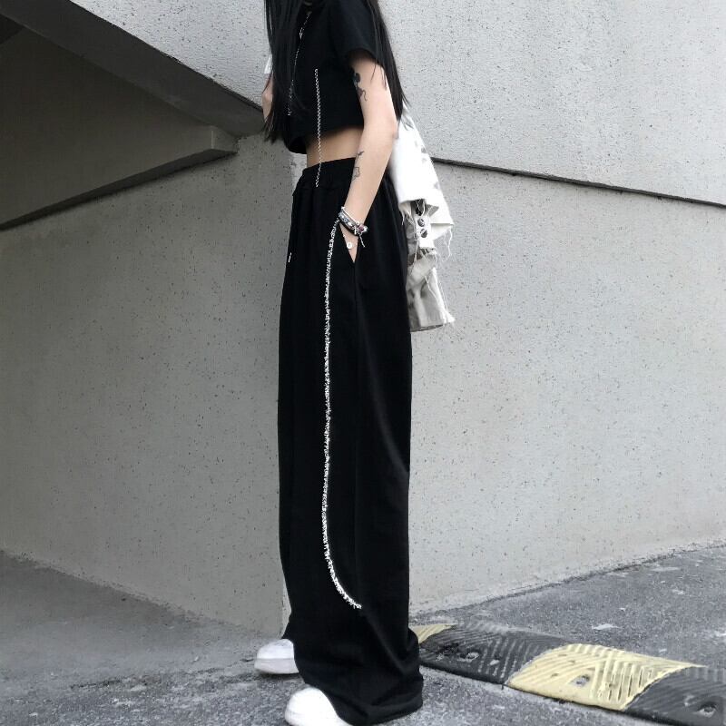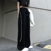 トレンドブラックルーズ薄手ストレッチウェストハイウェストカジュアルパンツ ワイドレッグレディース エラスティック 伸縮 ワイドパンツ ウエスト Studios76170860322