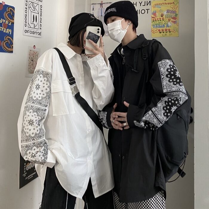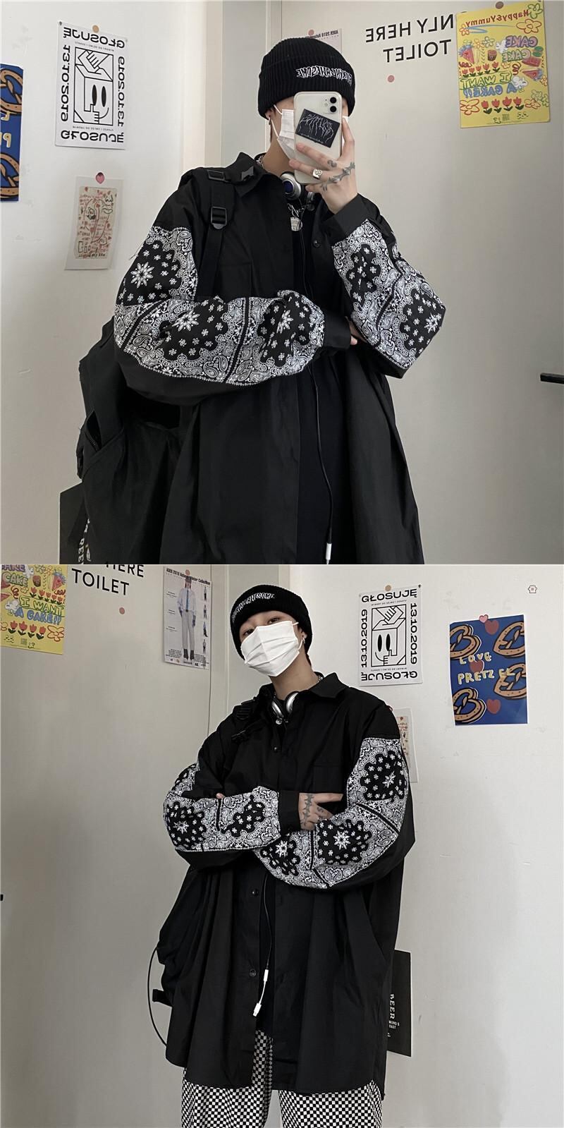 トレンドスタンダードFlowerデザイン シャツ ルーズカジュアルメンズレディース ロング レトロ フラワーデザイン ステッチ 長袖 Studios1226647036 | pLegLad Studios