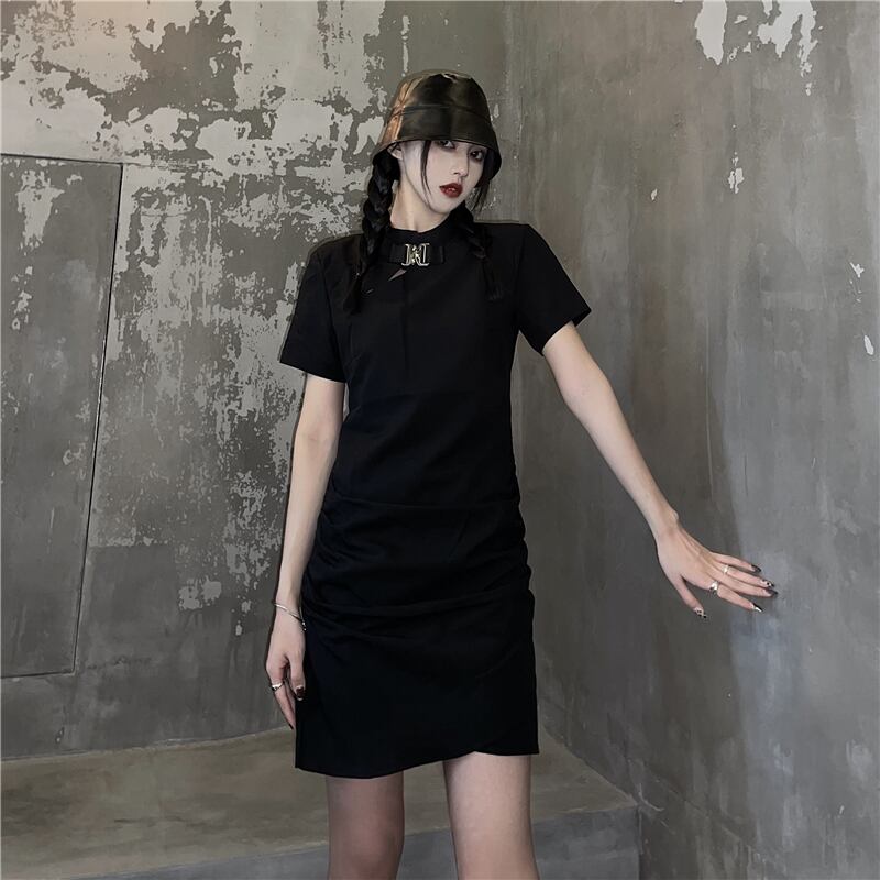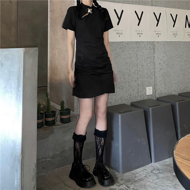 スタイルワンピースレディース夏服韓国ファッショントレンドスタンダードブラックハイウェストウェスト薄手カラースカート レトロ 夏物 ウエスト Studios37900914173
