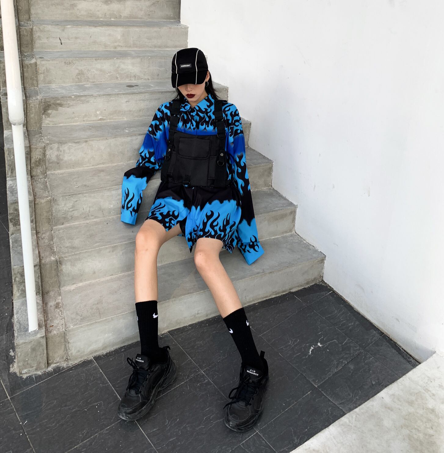 トレンドスタイルブループリントシャツ レディースブラック ロング ストリート 原宿 長袖 Studios2041176682