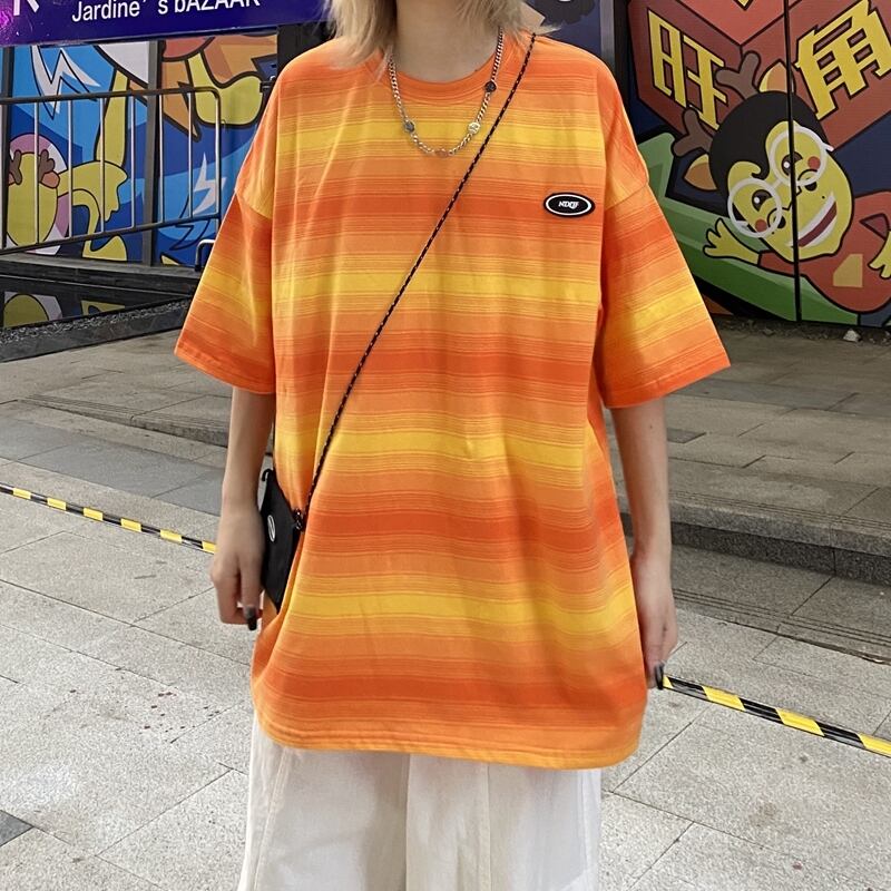 夏服韓国ファッショントレンドスタンダードストライプカラーカジュアルルーズTシャツメンズレディース レトロ 夏物 Studios71371387316