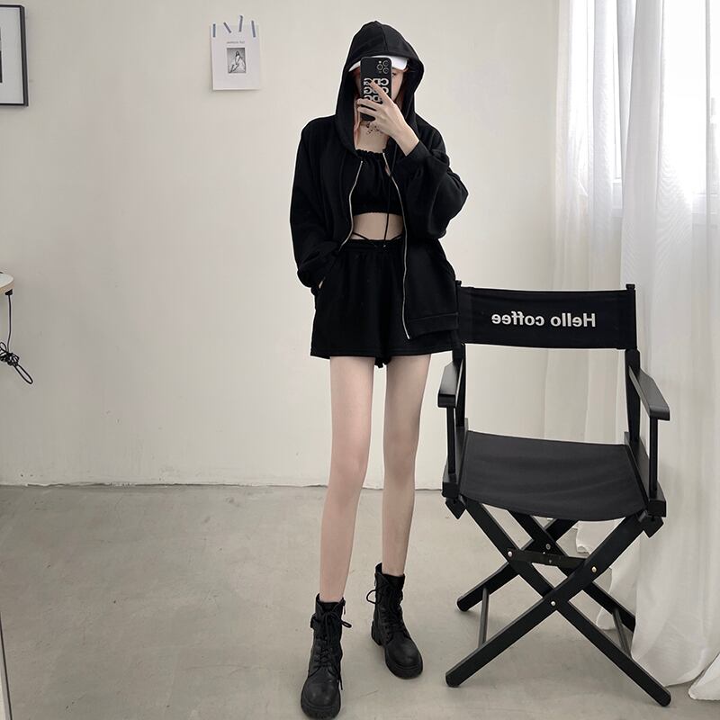 色:黒いジャケット,チューブトップ+ショーツスーツ