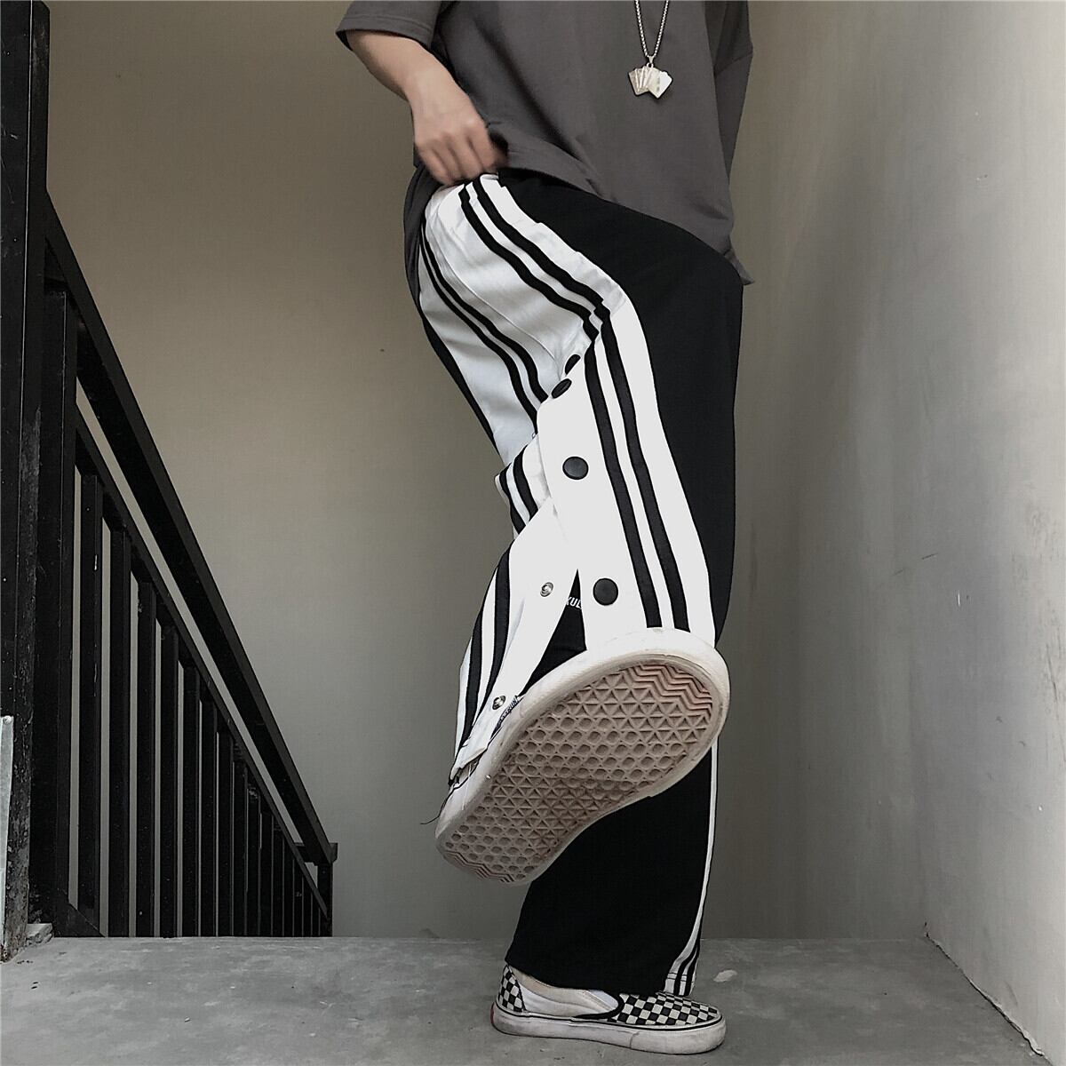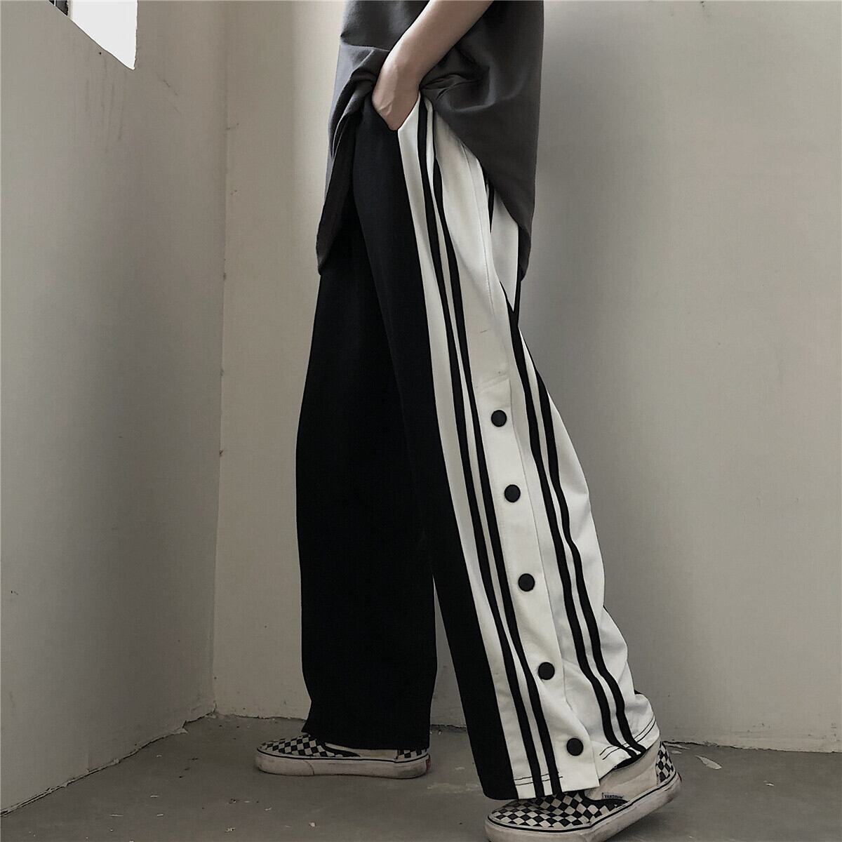 韓国ファッショントレンドスタイルカジュアルルーズカラーポケットボタンストレッチウェストメンズレディース ストリート エラスティック 伸縮 原宿 ステッチ ウエスト Studios48565046035 | pLegLad Studios