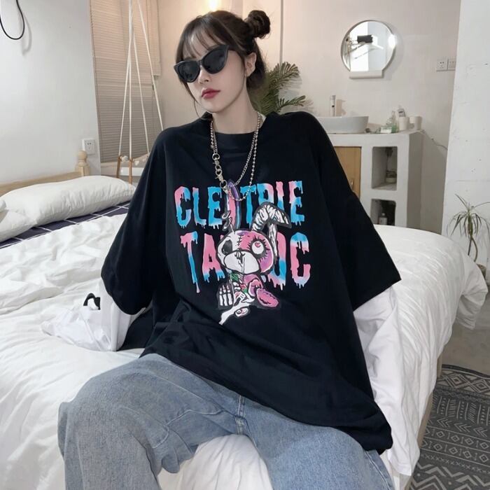 秋物韓国ファッショントレンドスタイルプリント柄ルーズTシャツトップス メンズレディース ロング ストリート 原宿 オータム 長袖 Studios83791625508 | pLegLad Studios