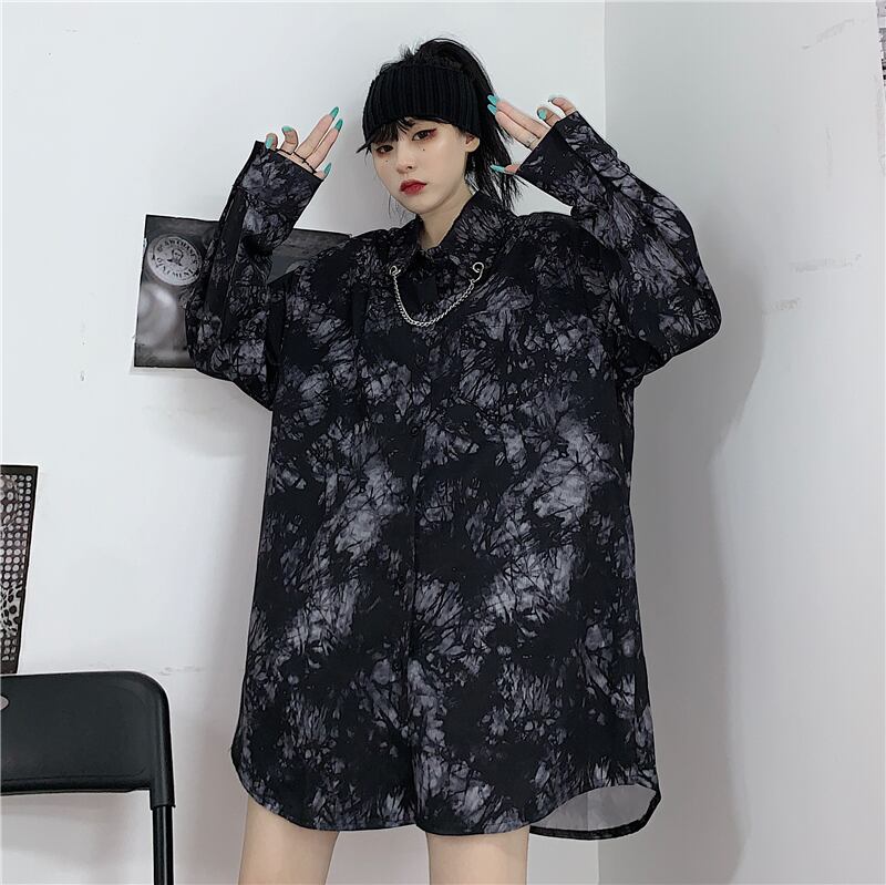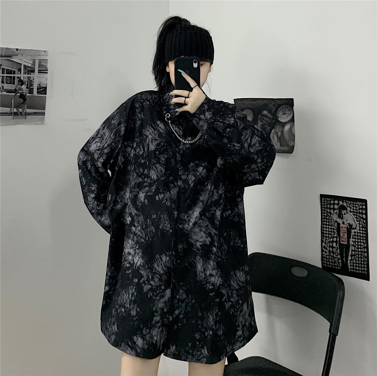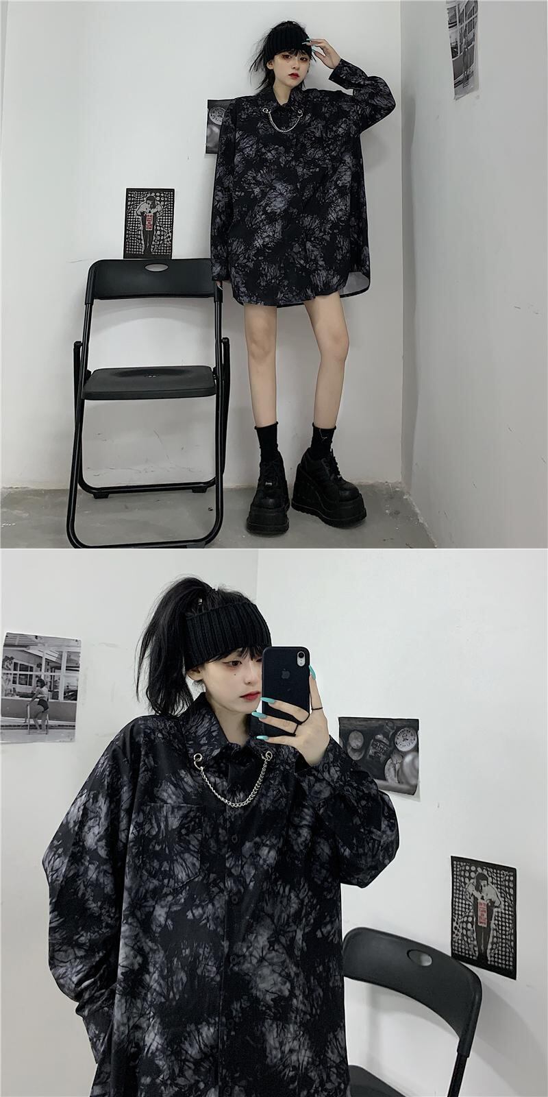 秋物韓国ファッショントレンドスタイルスタンダードチェーン ルーズシャツ トップス メンズレディース ロング レトロ ストリート 原宿 オータム 長袖 Studios41070058302 | pLegLad Studios