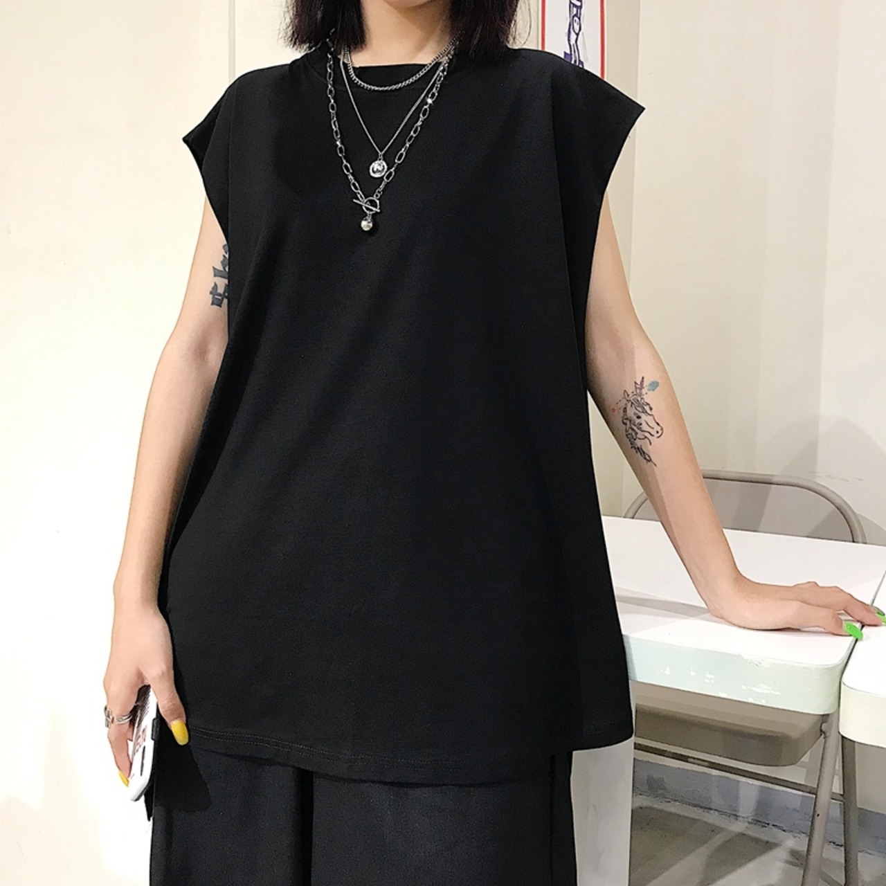 ジャケット レディース夏服韓国ファッショントレンドルーズラウンドネックノースリーブTシャツ 夏物 Oネック スタイル ウエスト Studios52825079607 | pLegLad Studios