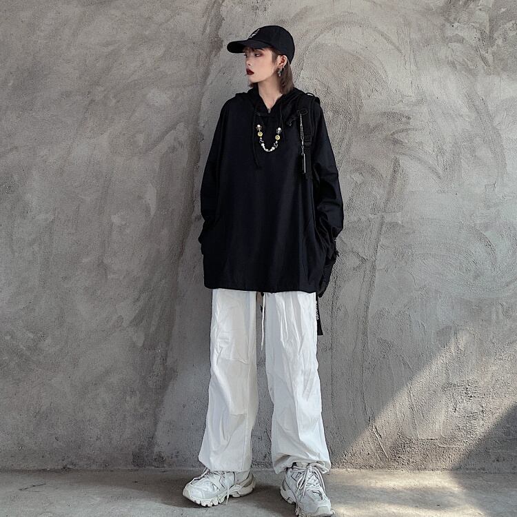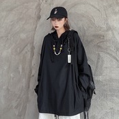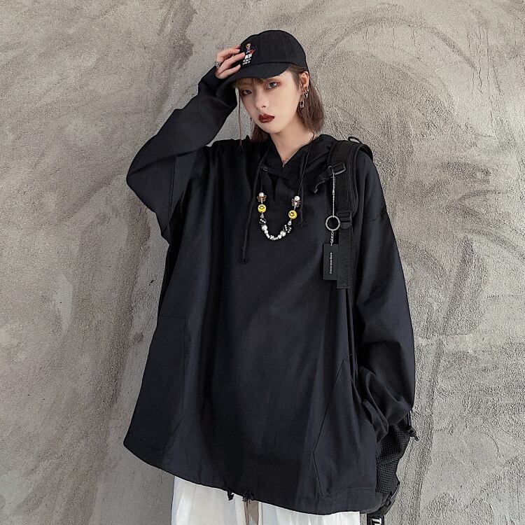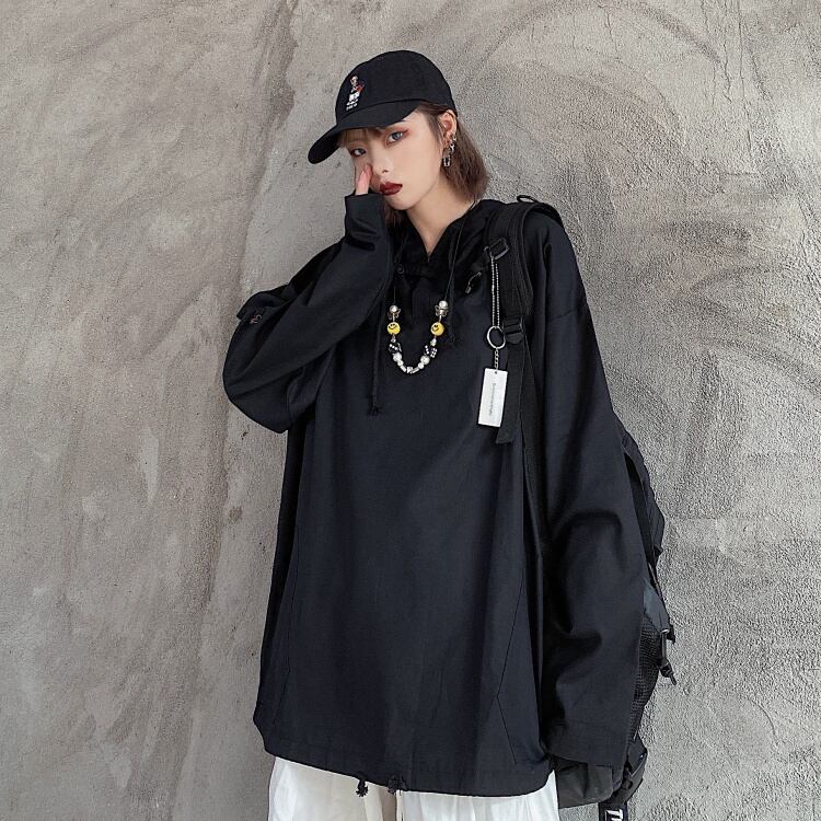 スプリング薄手セーター レディース韓国ファッショントレンドカラールーズブラックフードトップス 春物 ピュア ボーイズ スタイル Studios16862415459 | pLegLad Studios