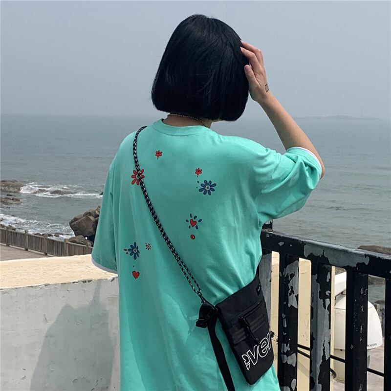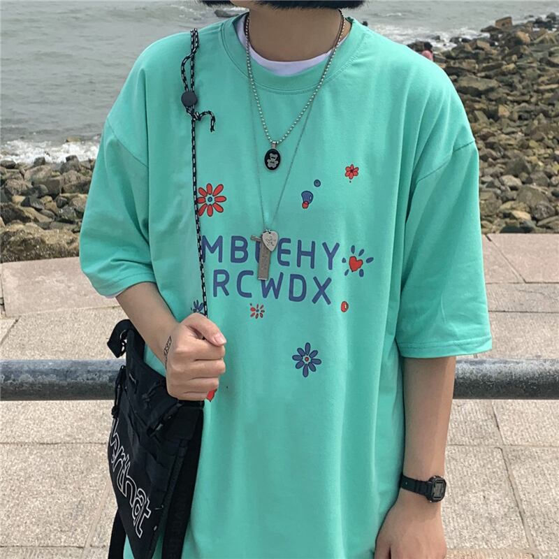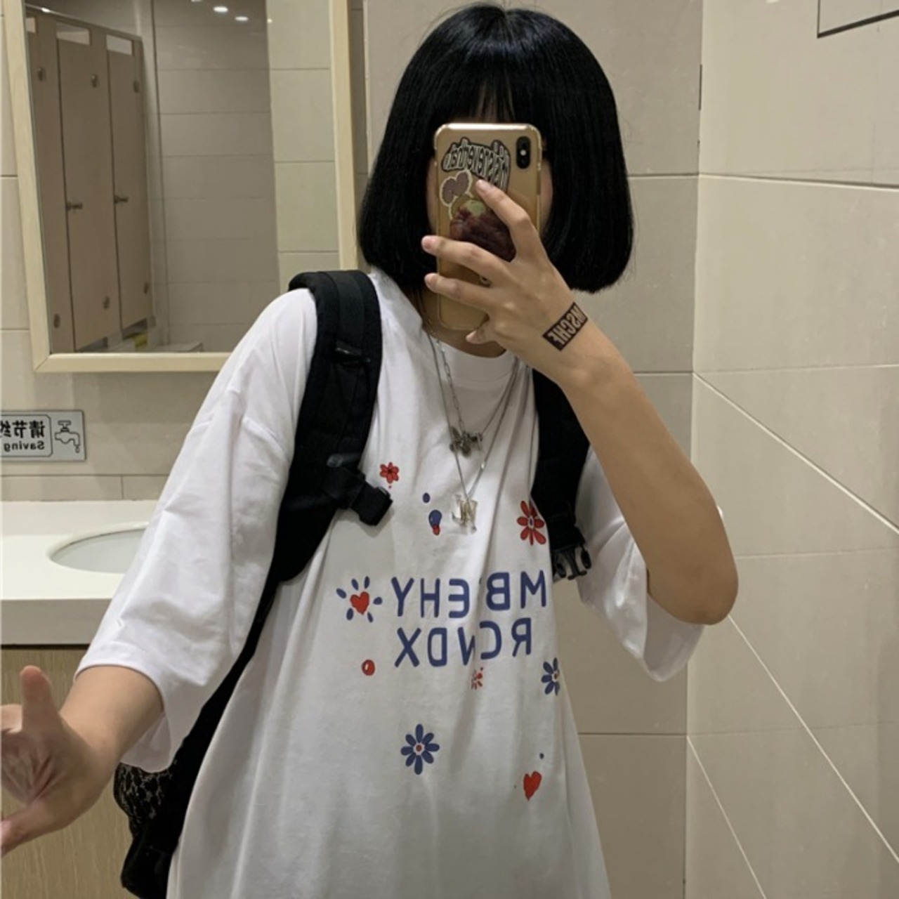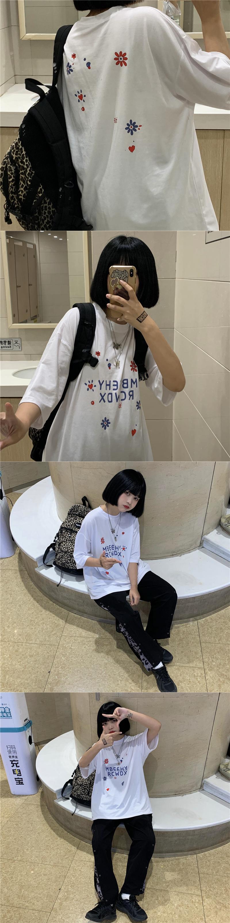 Tシャツレディース夏服韓国ファッショントレンドスタンダードFlowerデザイン プリントカジュアルルーズラウンドネックトップス レトロ 夏物 Oネック フラワーデザイン スタイル Studios92114038786 | pLegLad Studios