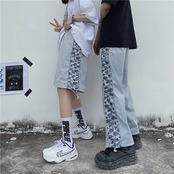 ショーツ レディース夏服韓国ファッショントレンドスタンダードFlowerデザイン ストライプルーズカジュアル レトロ 夏物 フラワーデザイン ステッチ スタイル Studios11993451677 | pLegLad Studios