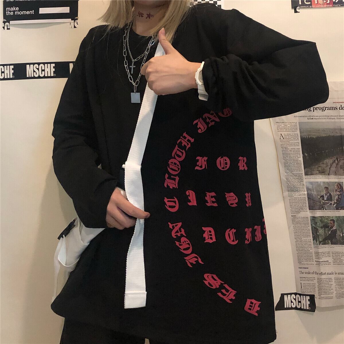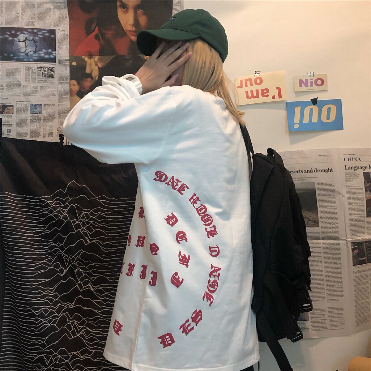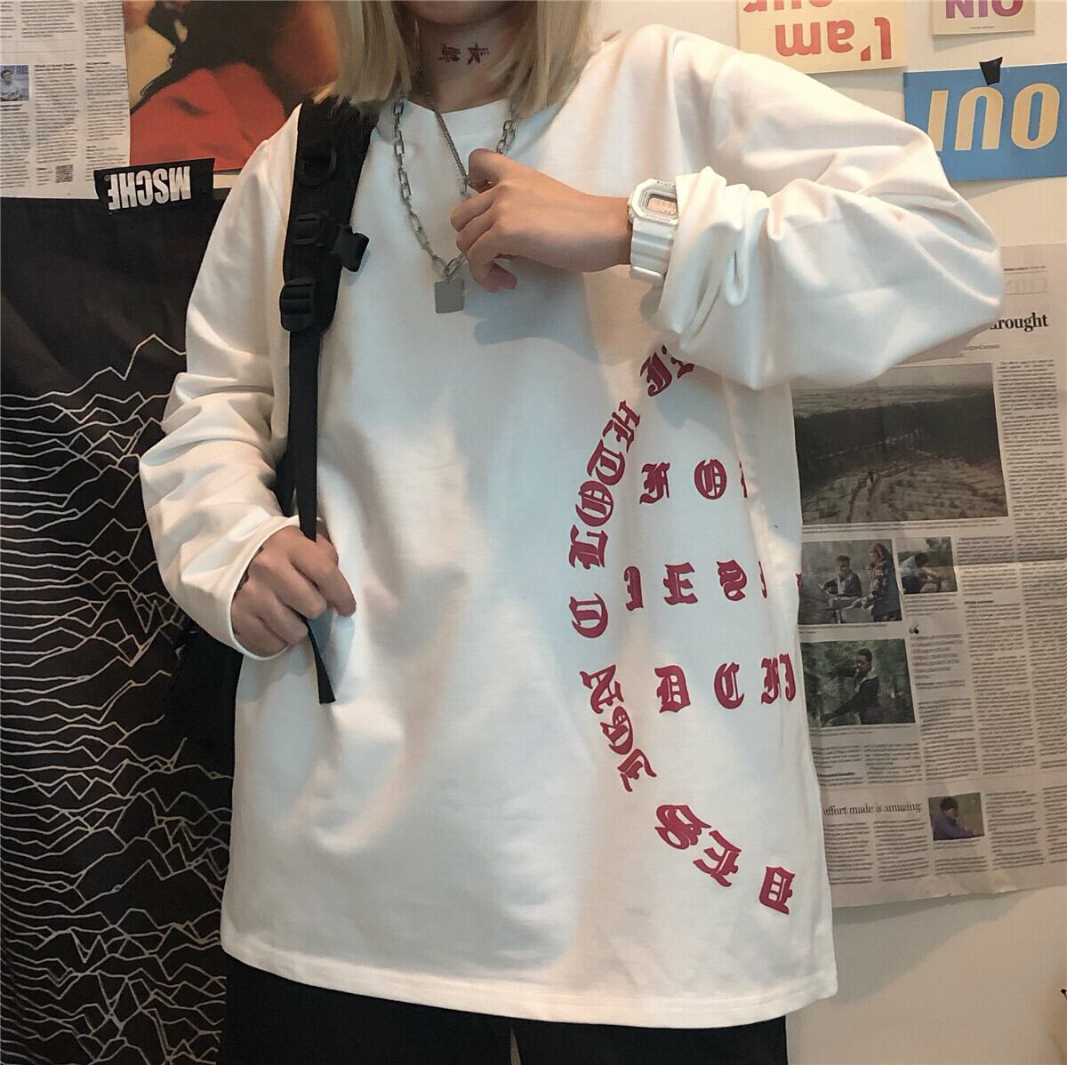 秋物韓国ファッショントレンドスタイルプリントゆったりシャツ ルーズTシャツトップス レディース ロング ストリート オータム 長袖 Studios53075110591 | pLegLad Studios