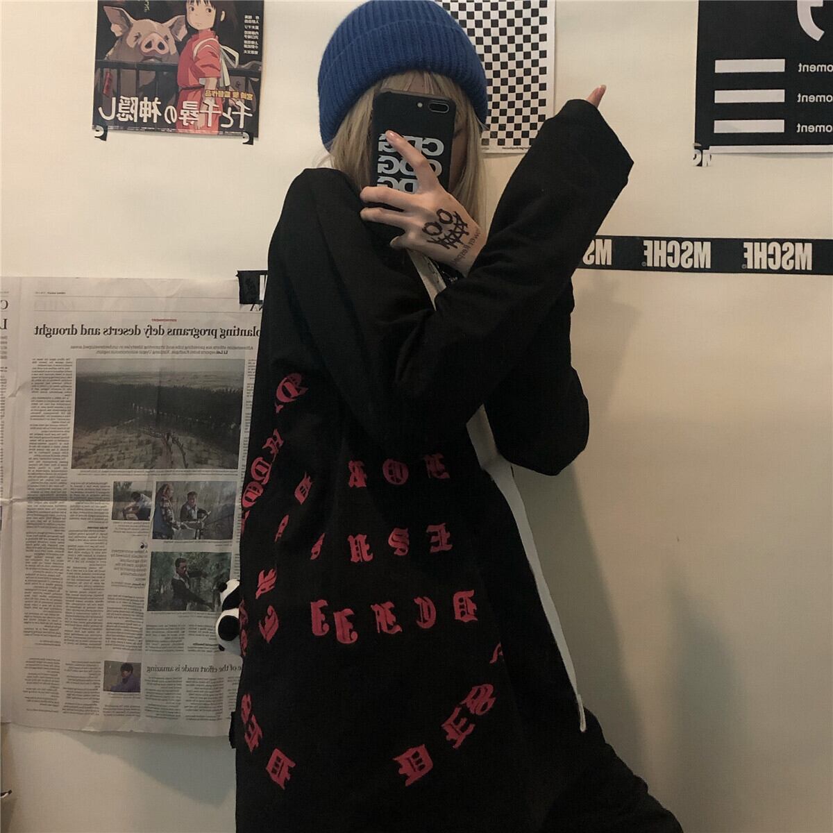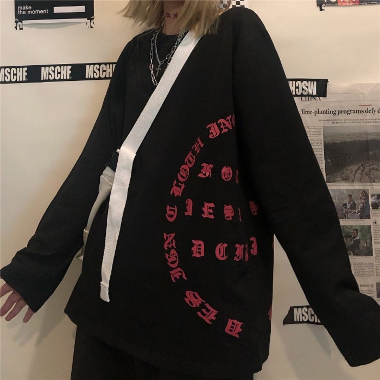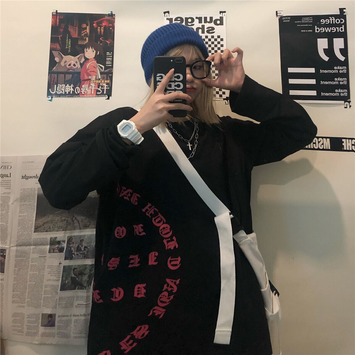 秋物韓国ファッショントレンドスタイルプリントゆったりシャツ ルーズTシャツトップス レディース ロング ストリート オータム 長袖 Studios53075110591 | pLegLad Studios