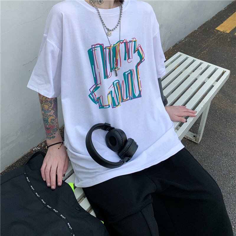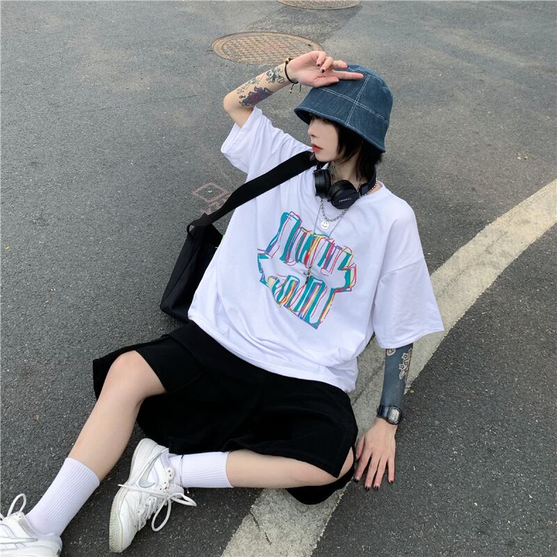 夏服韓国ファッショントレンドスタンダードプリントカジュアルラウンドネックルーズTシャツレディース レトロ 夏物 Oネック スタイル Studios21620011323 | pLegLad Studios