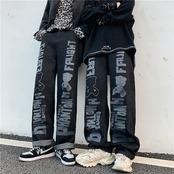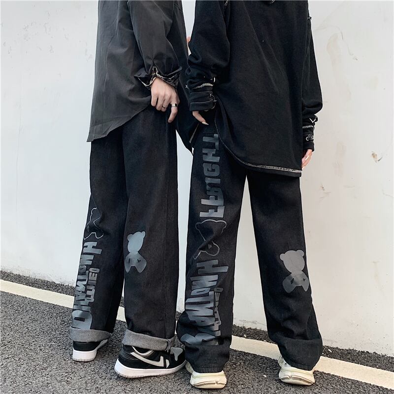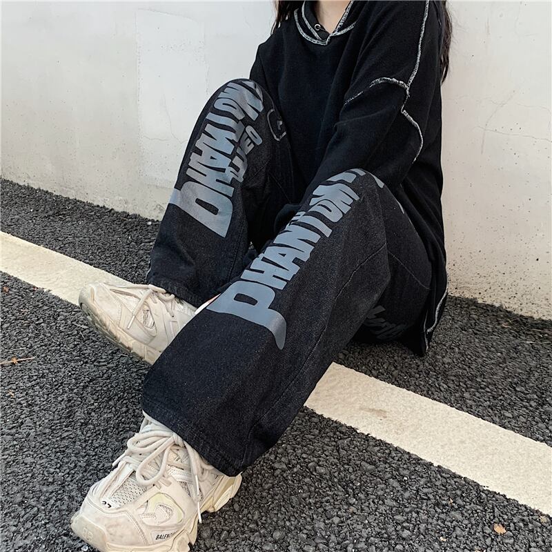 韓国ファッショントレンドスタンダードプリント柄カジュアルジーンズ ダークルーズパンツ レディース レトロ ストリート スタイル Studios44118002984 | pLegLad Studios