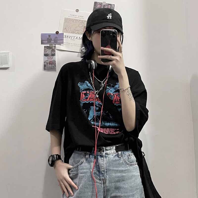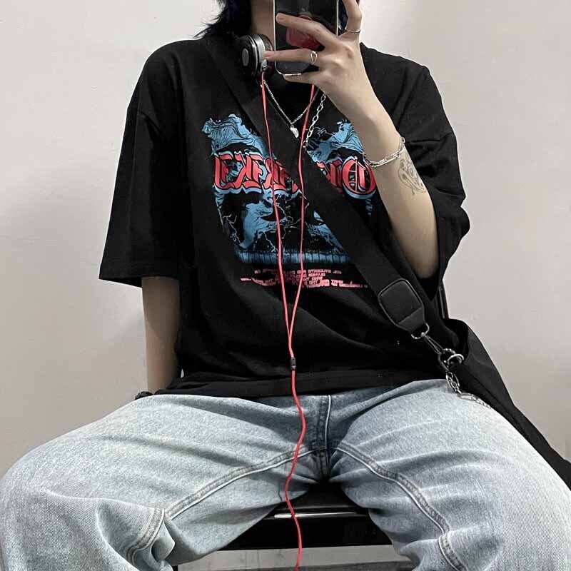 夏服韓国ファッショントレンドスタンダードプリントルーズTシャツメンズレディーストップス レトロ 夏物 スタイル Studios92556966598