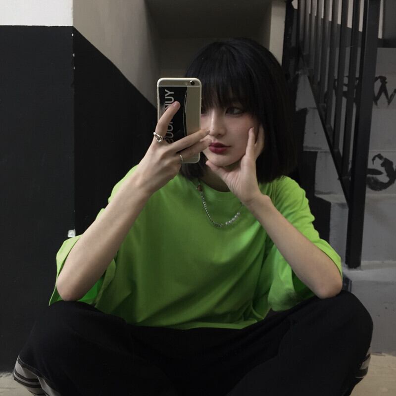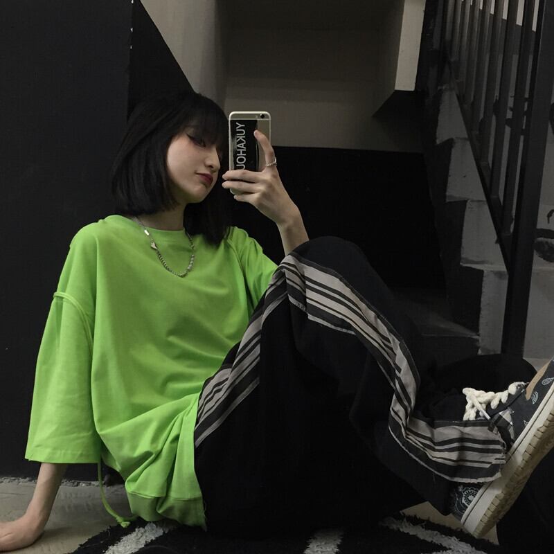 夏服韓国ファッショントレンドスタンダードマスタードグリーンカジュアルゆったりシャツ ルーズTシャツレディース レトロ 夏物 スタイル Studios72805694656 | pLegLad Studios