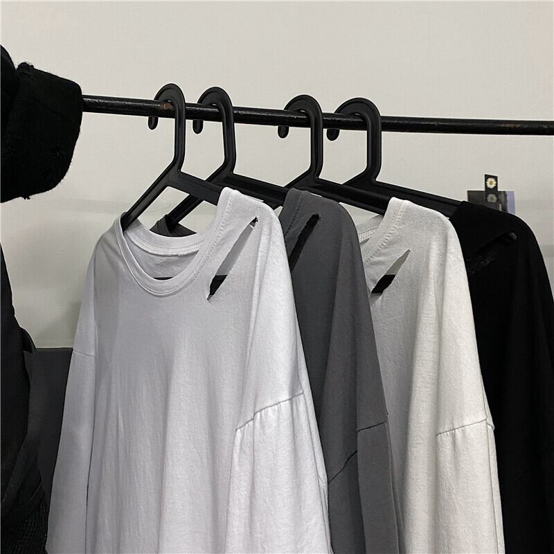 スプリング夏服韓国ファッショントレンドスタイルソリッド カラールーズラウンドネック長袖スリーブTシャツメンズレディース ロング ストリート 原宿 春物 夏物 Oネック ソリッドカラー Studios13674693173 | pLegLad Studios