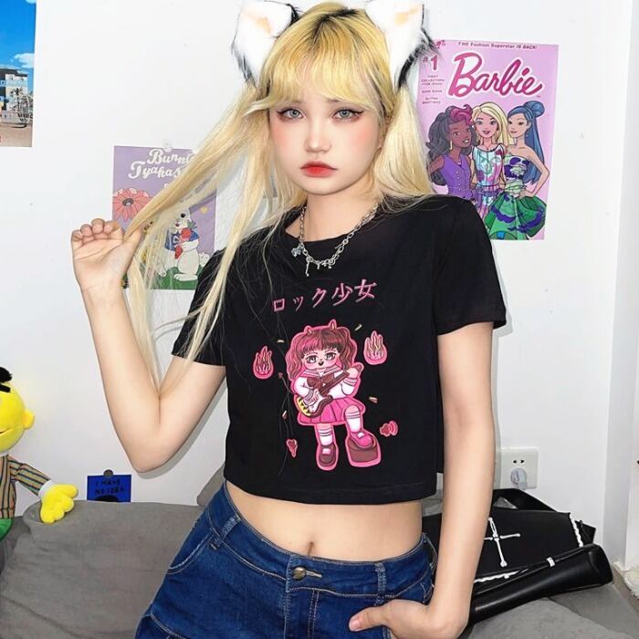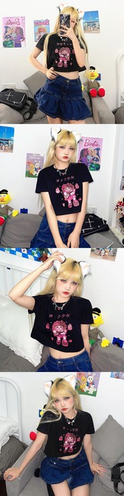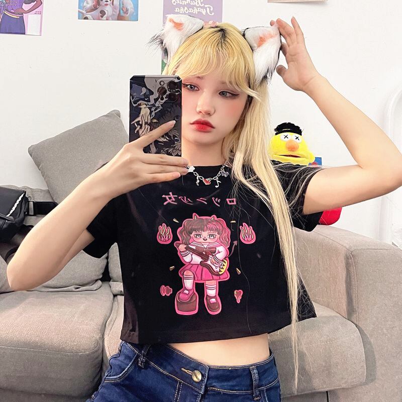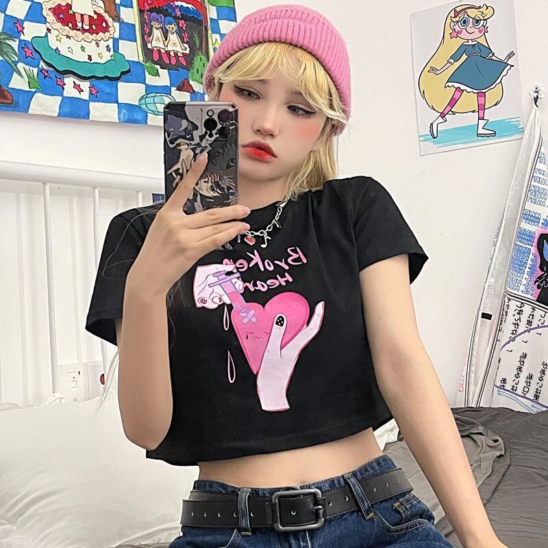ショートTシャツレディース夏服韓国ファッショントレンドスタンダードプリント柄ウェストスリムトップス レトロ 夏物 スタイル ウエスト Studios12283942731 | pLegLad Studios
