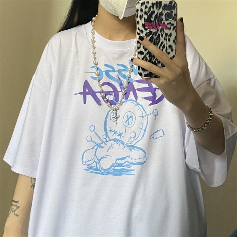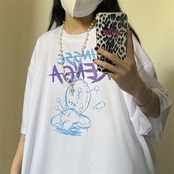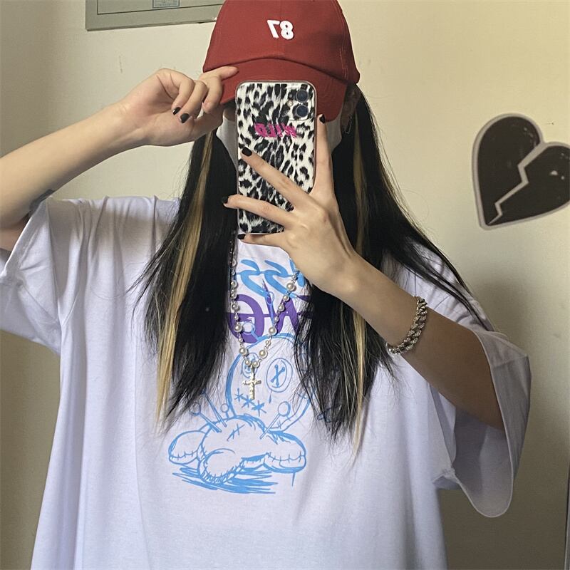 夏服韓国ファッショントレンドプリントカジュアルルーズラウンドネック半袖スリーブTシャツレディース ショート ハーフスリーブ 夏物 Oネック スタイル Studios12466460929 | pLegLad Studios