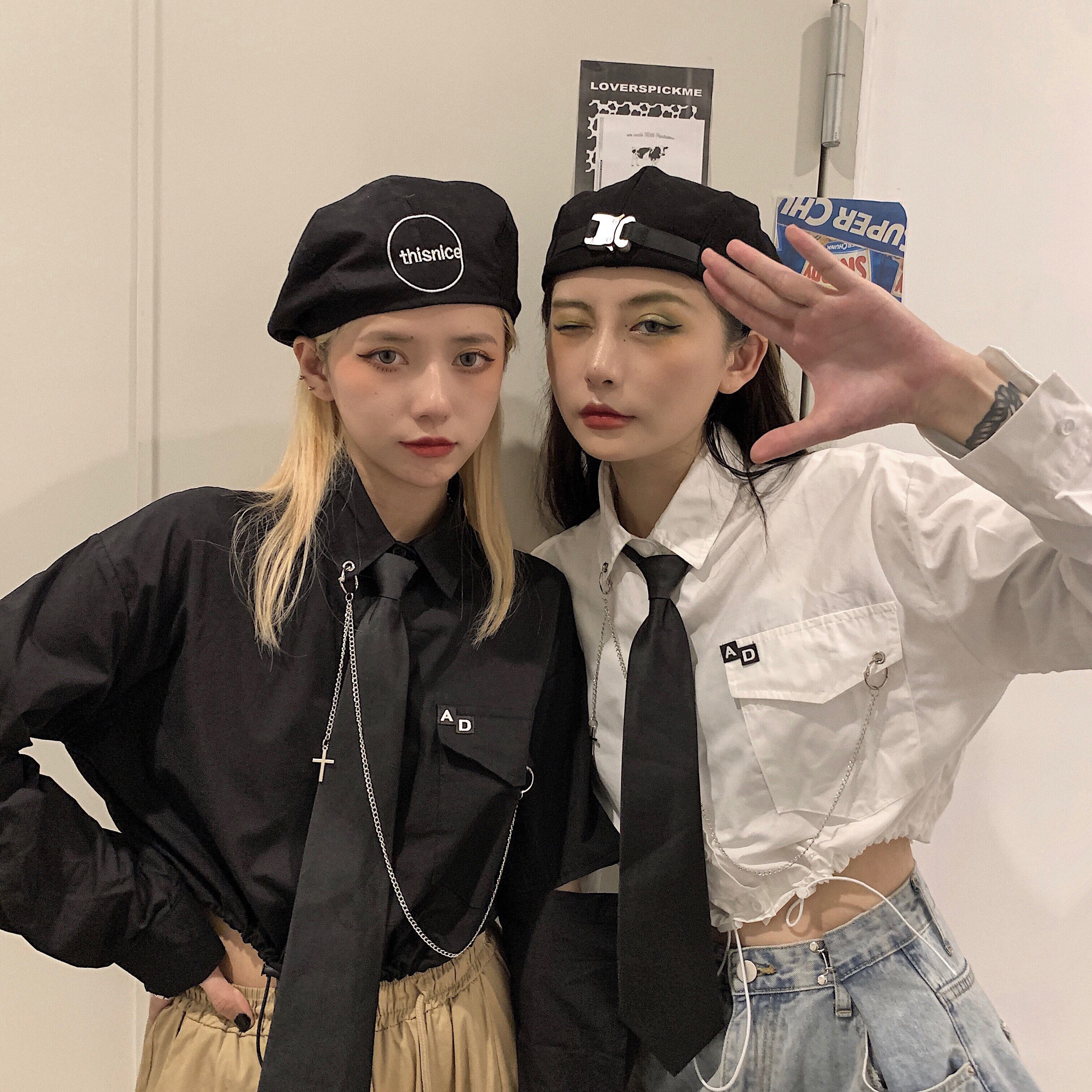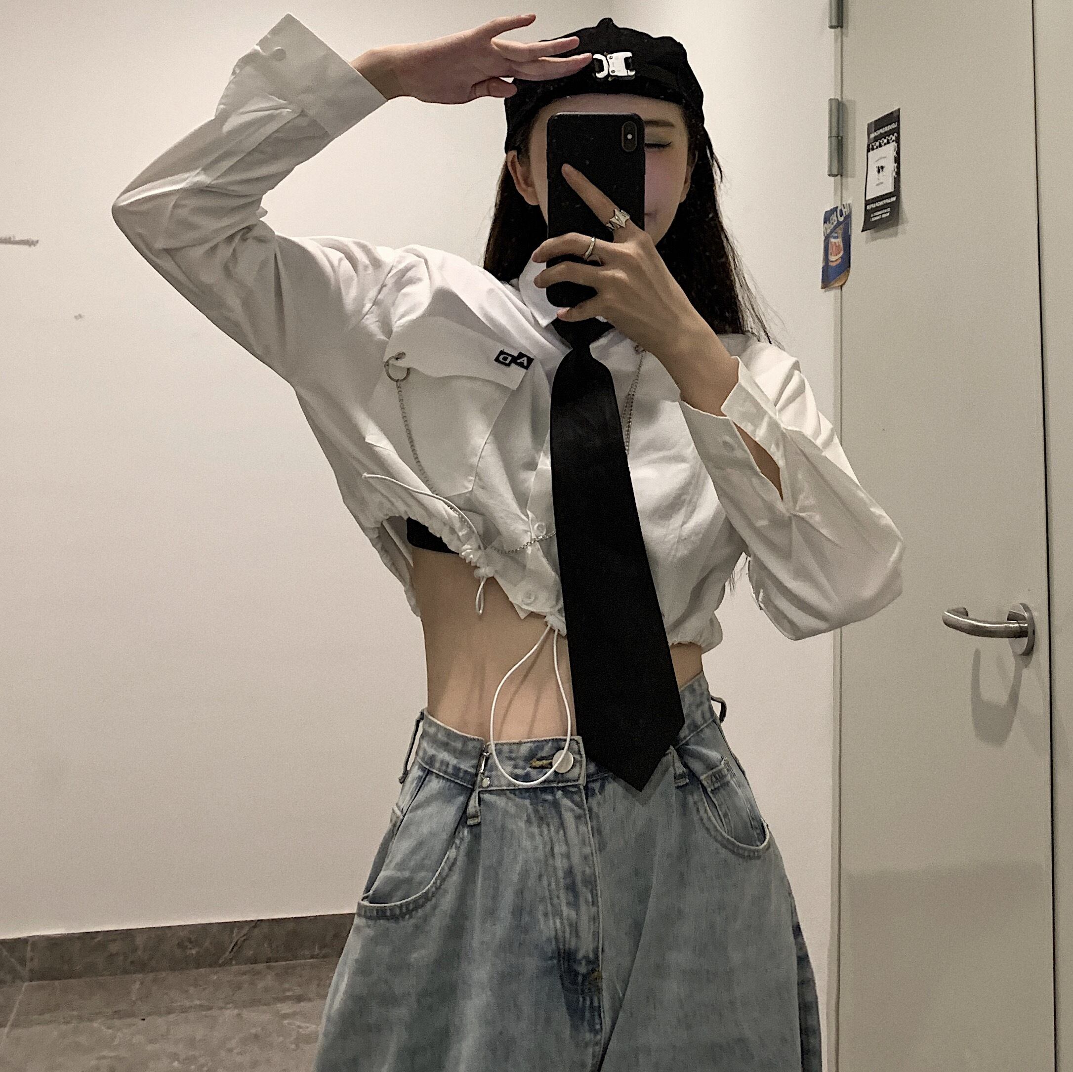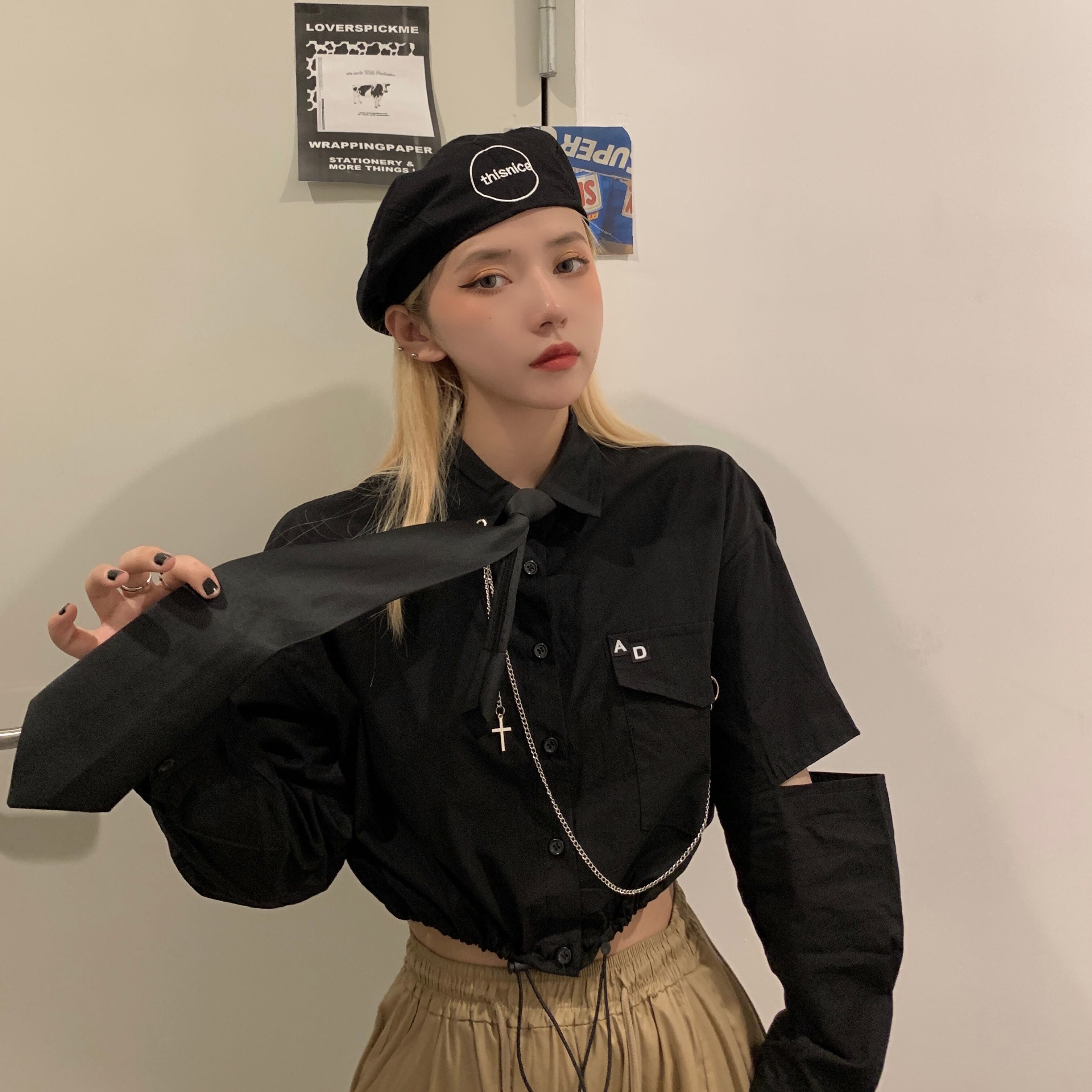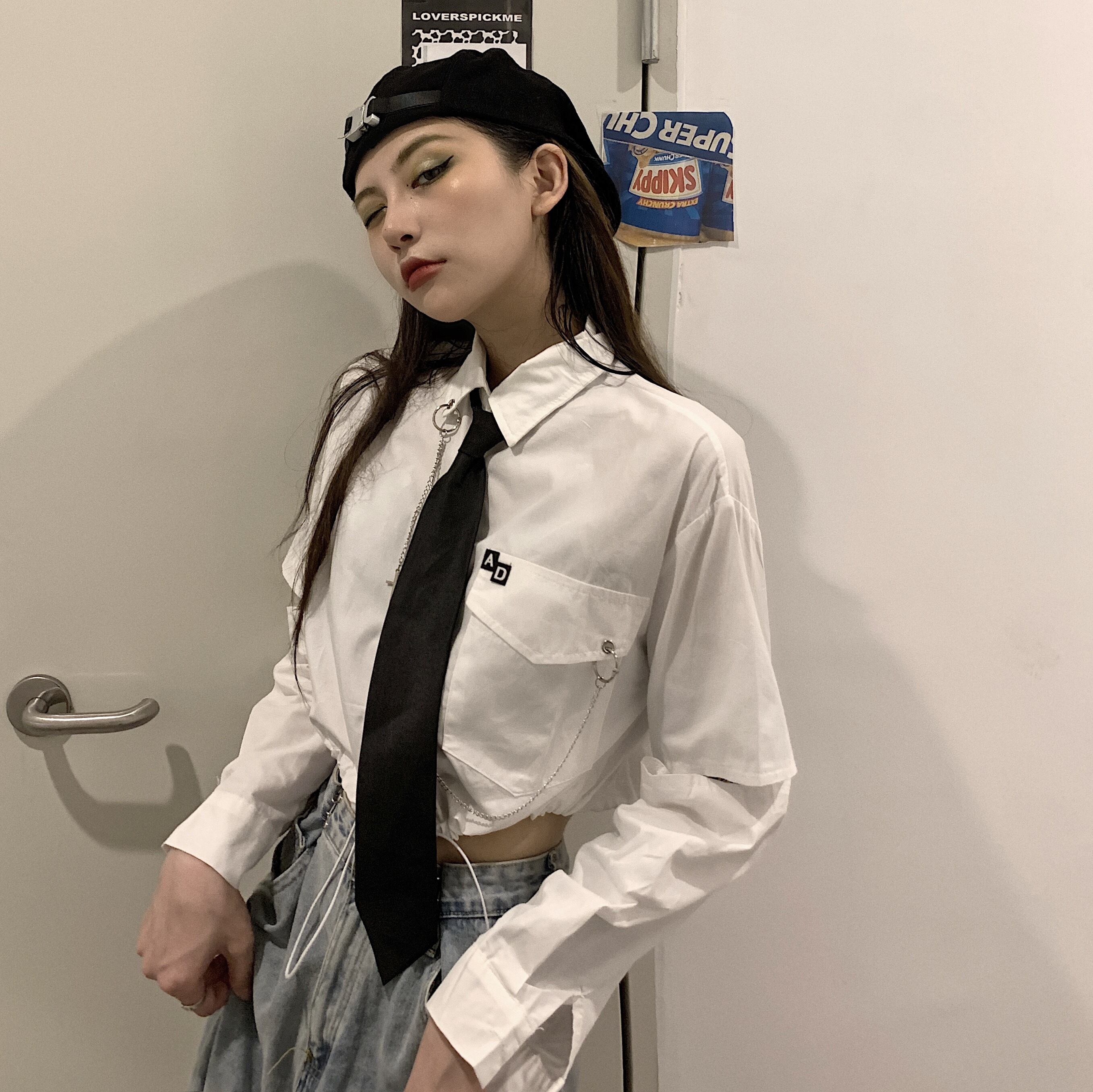 秋物韓国ファッショントレンドスタイルショートスリット長袖スリーブシャツ レディース ロング 大人ガーリー スウィート キュート カジュアル 原宿 オータム Studios4642213608 | pLegLad Studios
