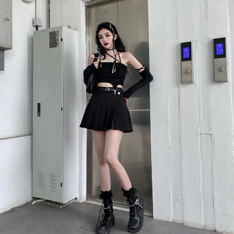 カジュアルレディース夏服韓国ファッショントレンドブラックハイウェストウェスト薄手Aラインプリーツスカート 夏物 スタイル ウエスト Studios77885971546 | pLegLad Studios