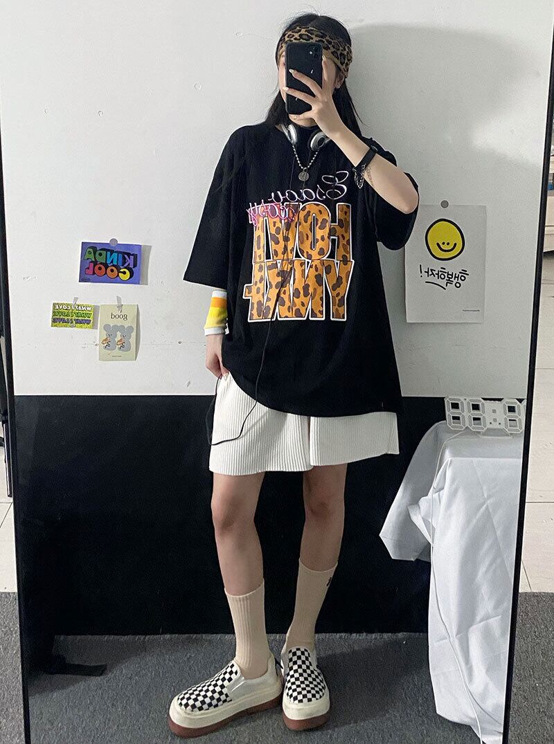 夏服韓国ファッショントレンドレオパードプリントルーズラウンドネックカジュアルTシャツレディーストップス 夏物 Oネック スタイル Studios20652712478 | pLegLad Studios