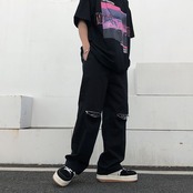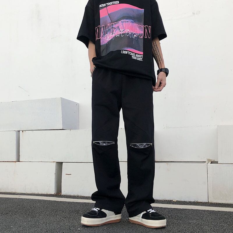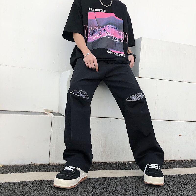韓国ファッショントレンドFlowerデザイン ジッパーワイドレッグカジュアルパンツ メンズレディース ストリート ワイドパンツ フラワーデザイン スタイル Studios86527991687 | pLegLad Studios