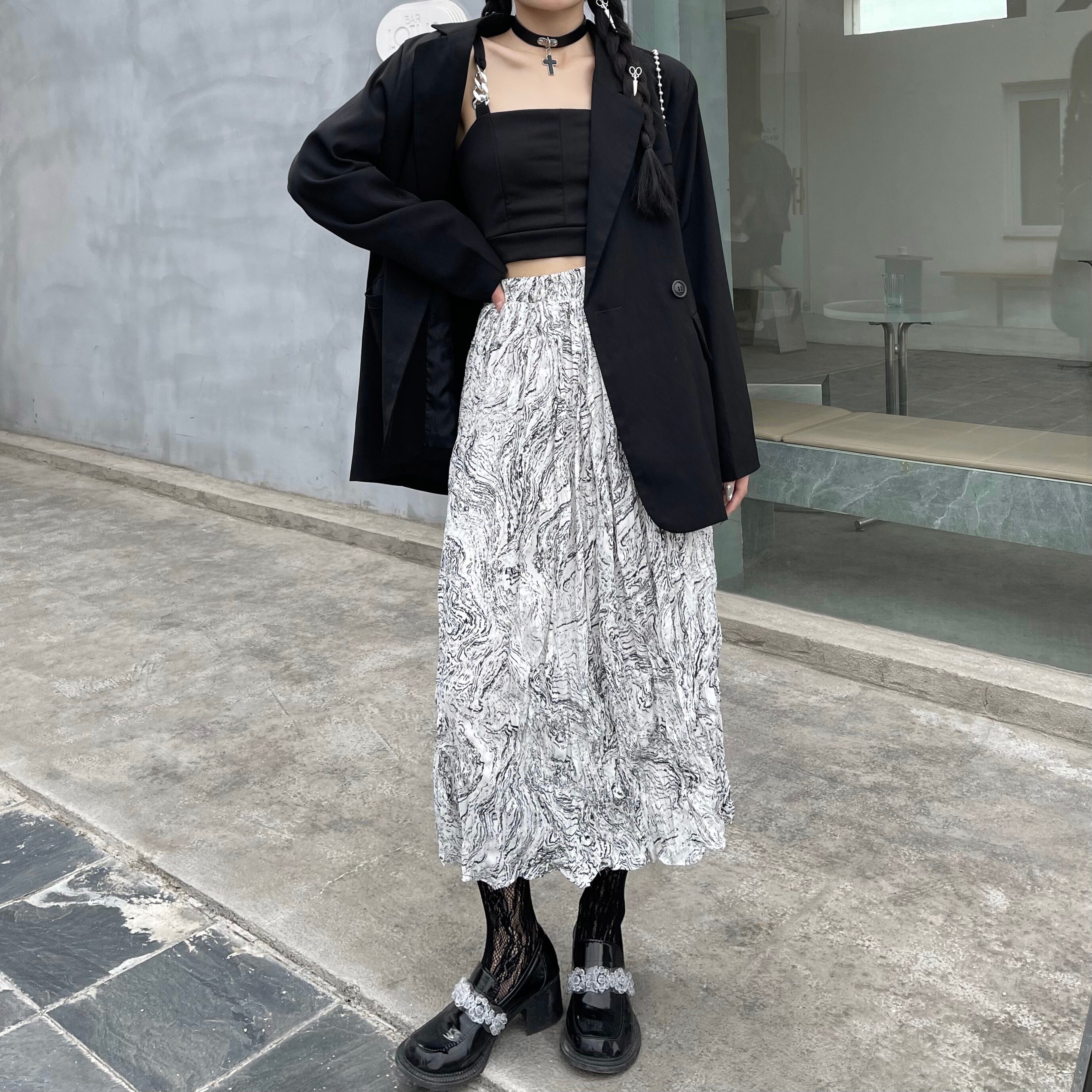 スカート レディース夏服韓国ファッショントレンドスタンダードシフォンハイウェストウェスト薄手ストレッチ レトロ エラスティック 伸縮 夏物 ボーイズ スタイル ウエスト ミドル丈 Studios51503499126 | pLegLad Studios