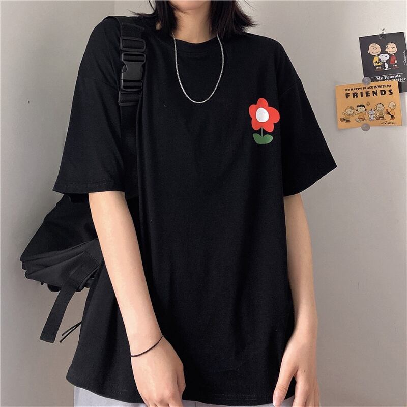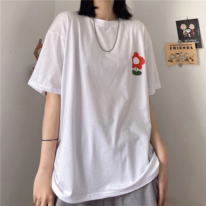 夏服韓国ファッショントレンドスタンダードレッドFlowerデザイン ルーズカジュアルラウンドネックTシャツレディース レトロ 夏物 Oネック フラワーデザイン スタイル Studios77028262436 | pLegLad Studios