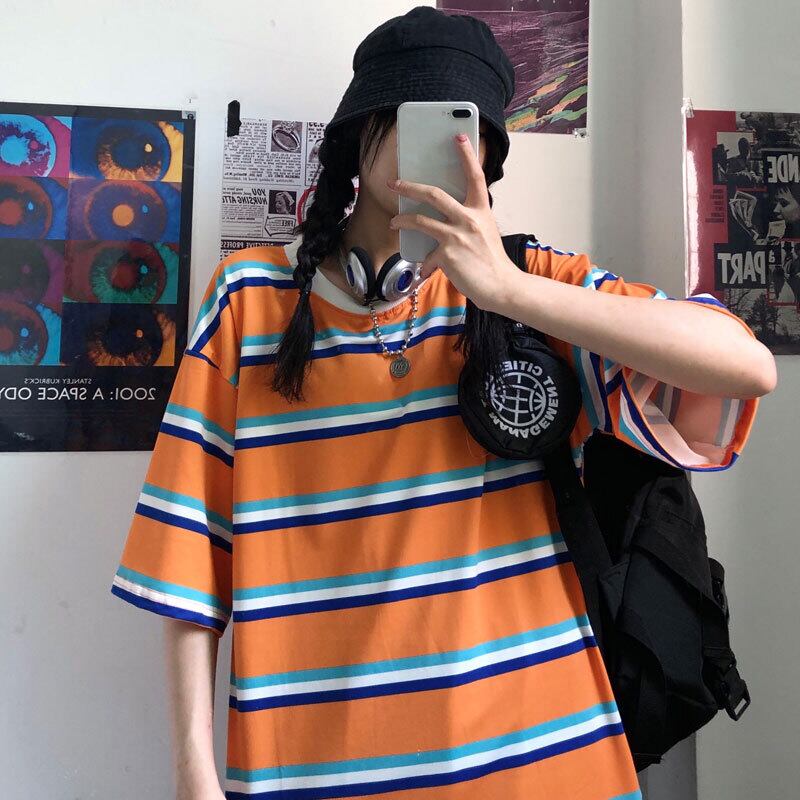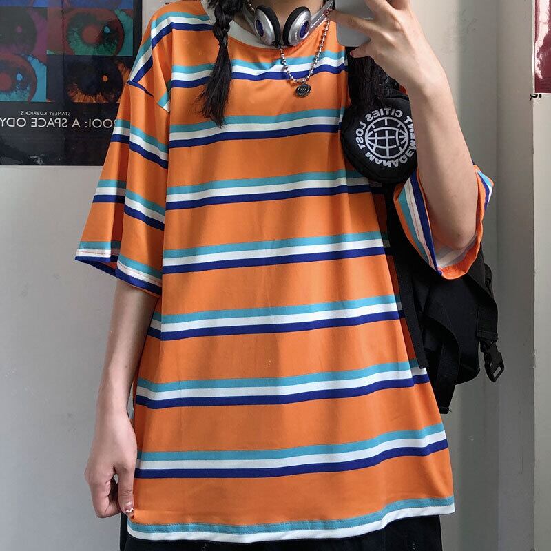 ストライプTシャツレディース夏服韓国ファッショントレンドスタンダードベーシックルーズラウンドネックカジュアルトップス レトロ 夏物 Oネック スタイル Studios96705480414 | pLegLad Studios