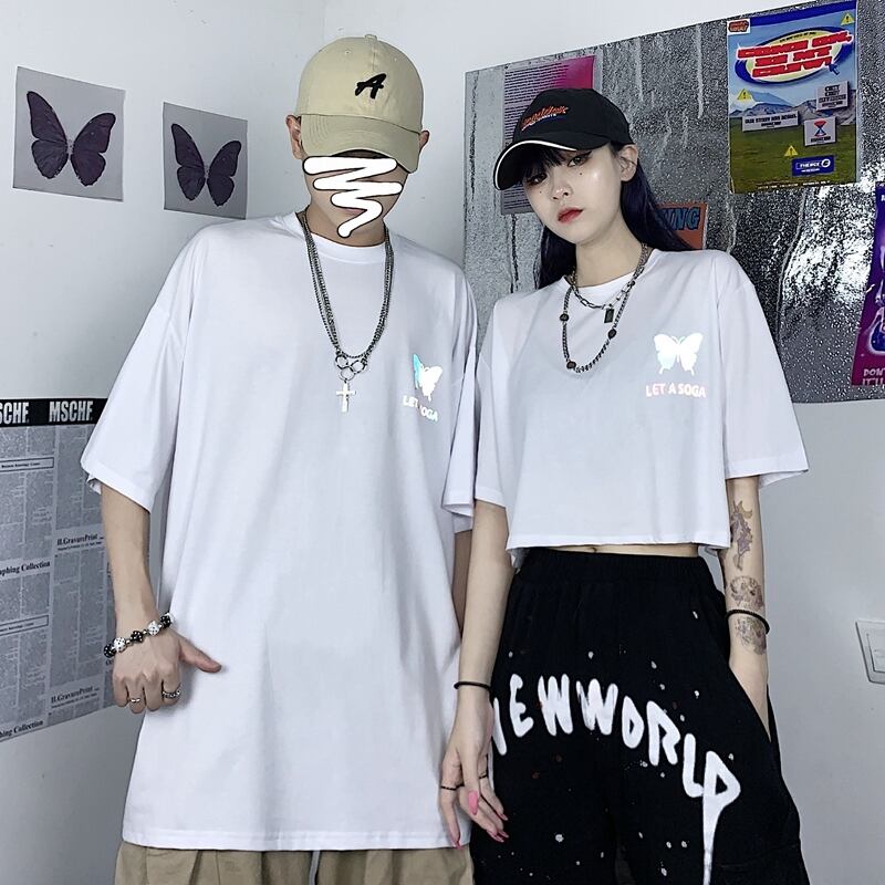 夏服韓国ファッショントレンドスタンダードButterflyデザイン プリント柄ルーズTシャツメンズレディース レトロ 夏物 スタイル Studios84680977583 | pLegLad Studios