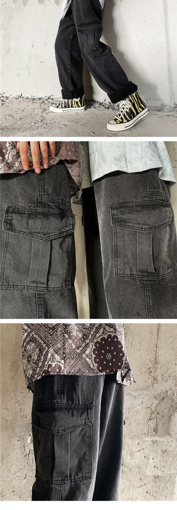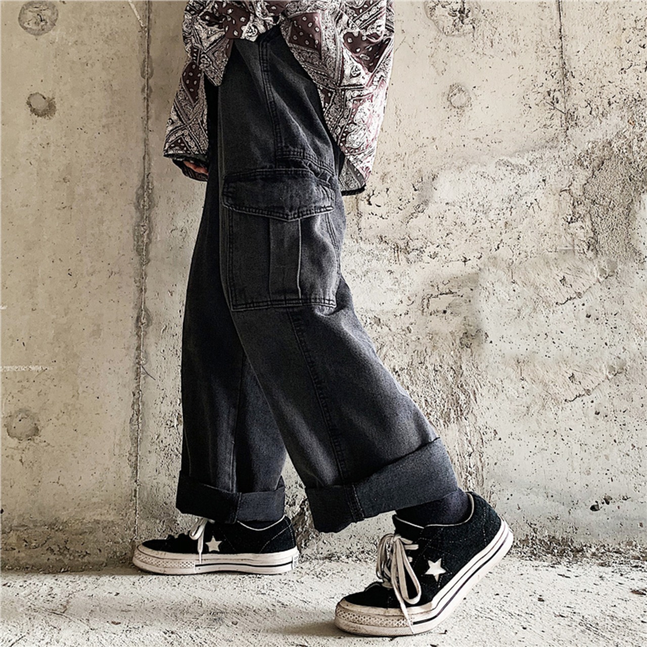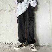 韓国ファッショントレンドスタイルスタンダードハイウェストウェストルーズワイドレッグパンツ レトロ ストリート 原宿 ワイドパンツ ボーイズ ウエスト Studios41628749639 | pLegLad Studios