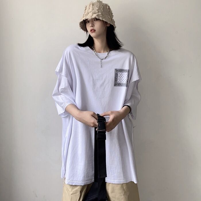 夏服韓国ファッショントレンドスタイルスタンダードFlowerデザイン ルーズカジュアルラウンドネックTシャツレディース レトロ ストリート 夏物 Oネック フラワーデザイン ステッチ Studios41132239578