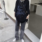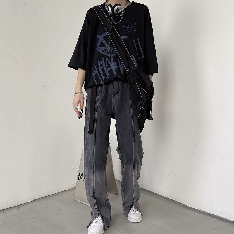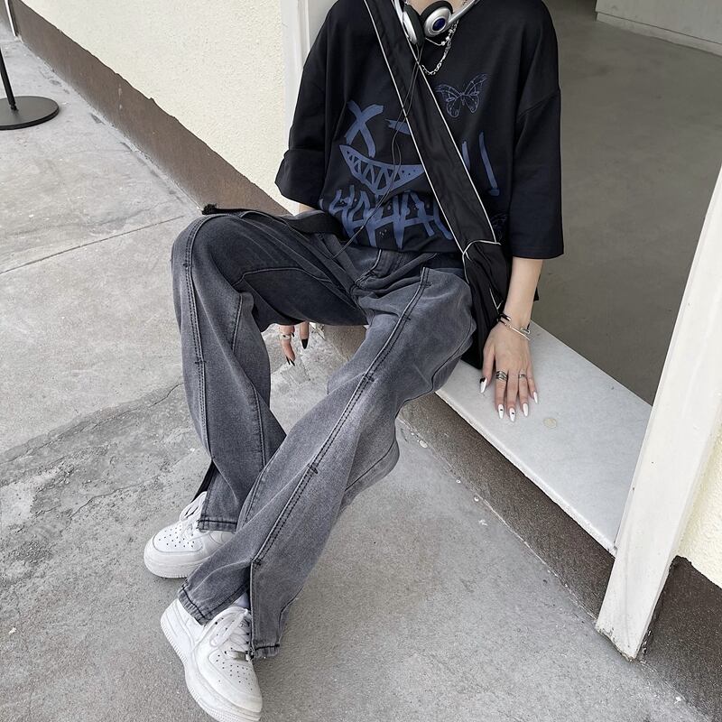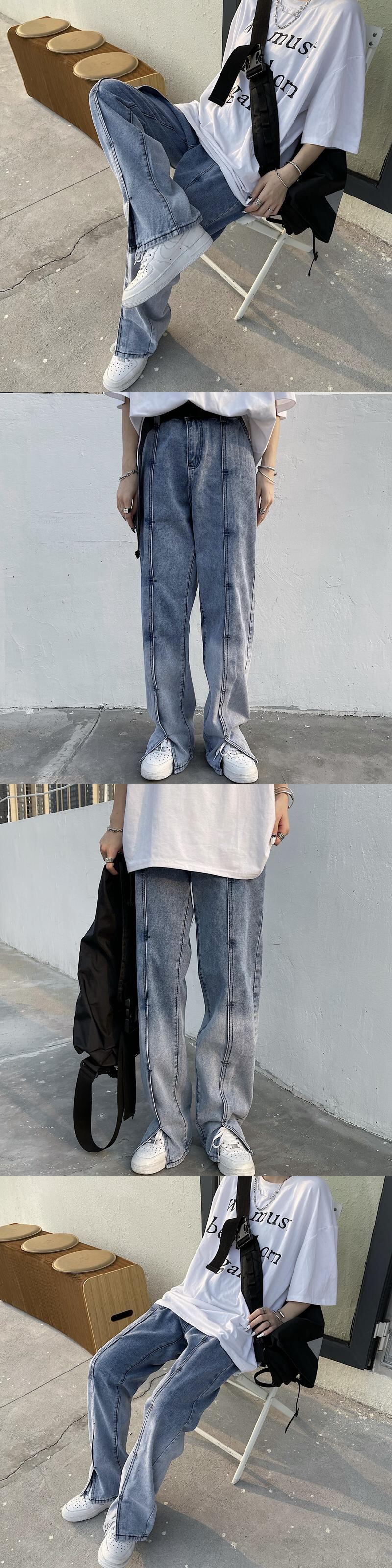 ジーンズ レディース夏服韓国ファッショントレンドスタンダードカラールーズハイウェストウェスト薄手ワイドレッグパンツ レトロ 夏物 ワイドパンツ スタイル ウエスト Studios81105367464 | pLegLad Studios