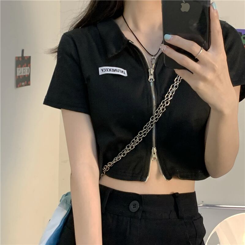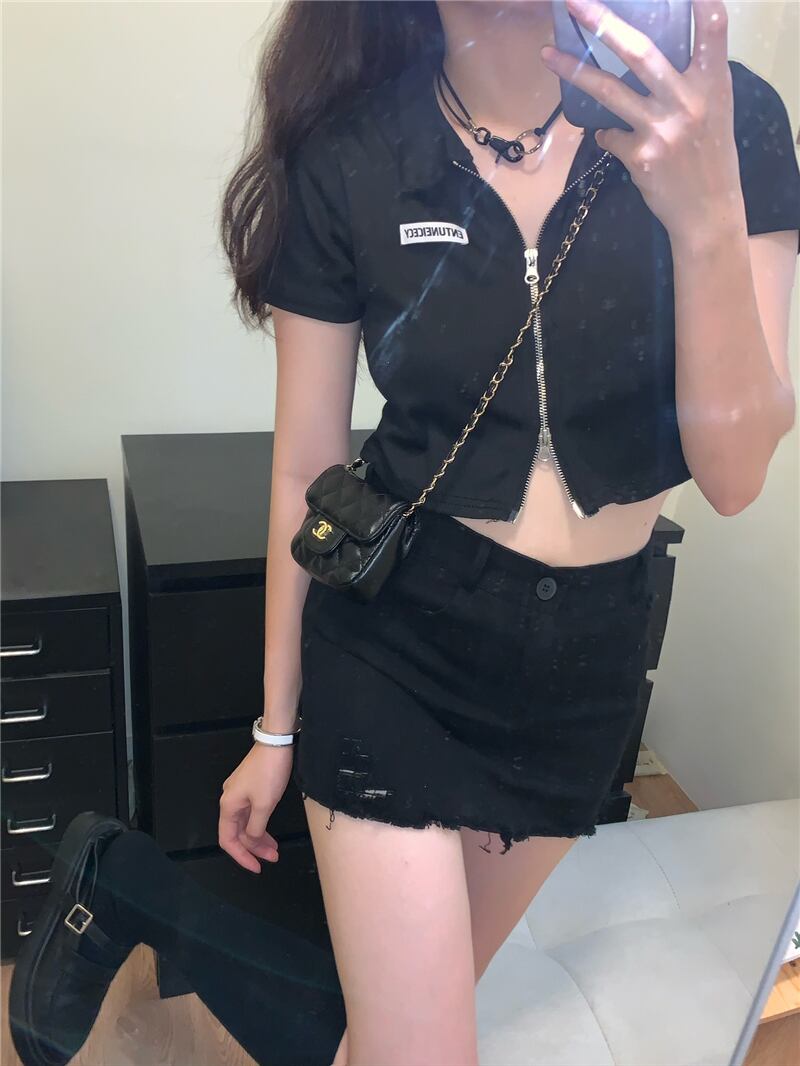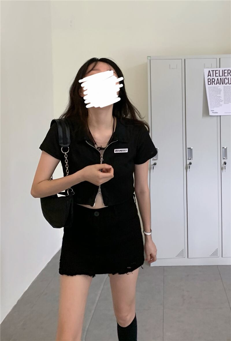 レディース夏服韓国ファッショントレンドショートジッパーカーディガントップス ハイウェストウェストミニスカート 夏物 スタイル ウエスト Studios97017427204 | pLegLad Studios