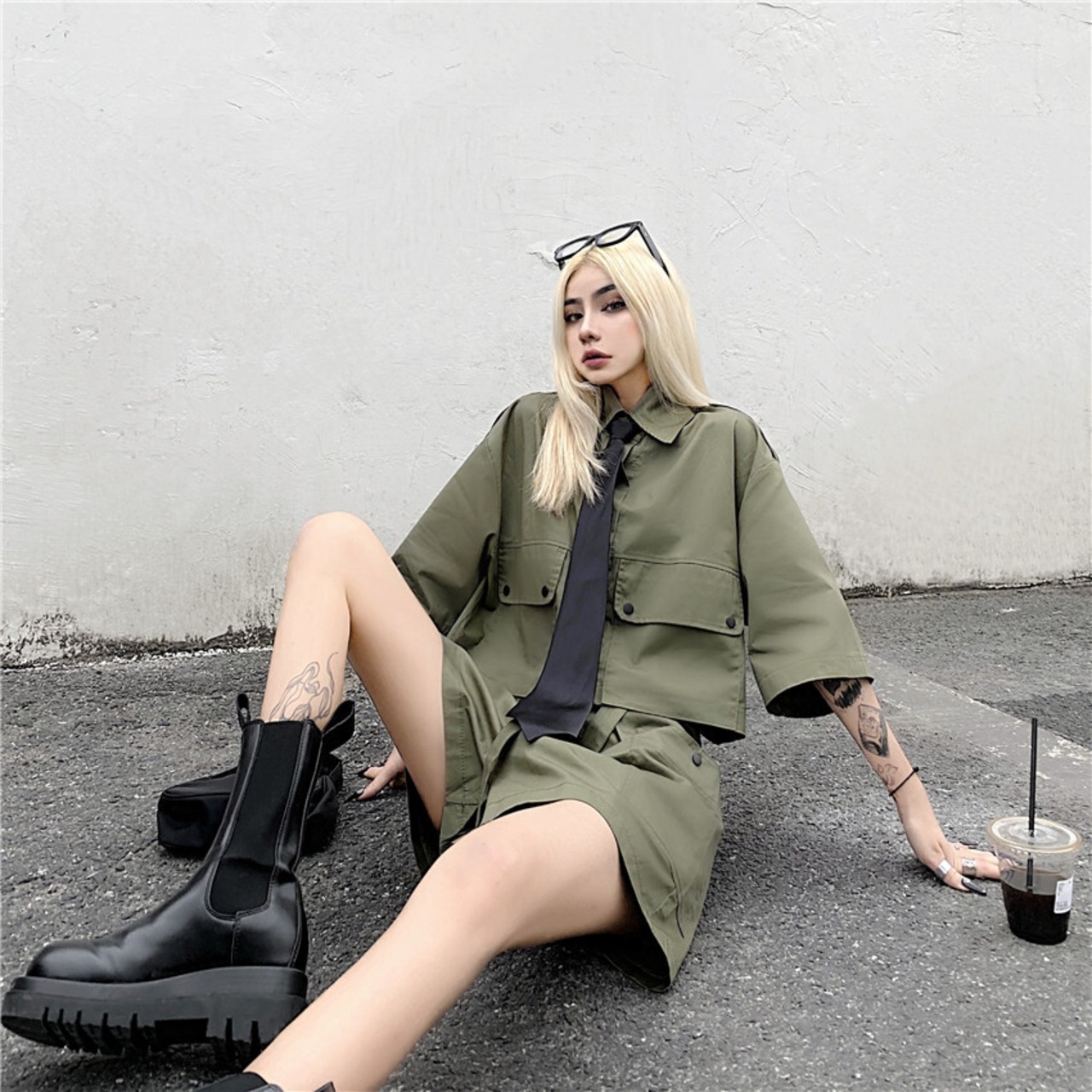 色:アーミーグリーン,黒,黒のネクタイ