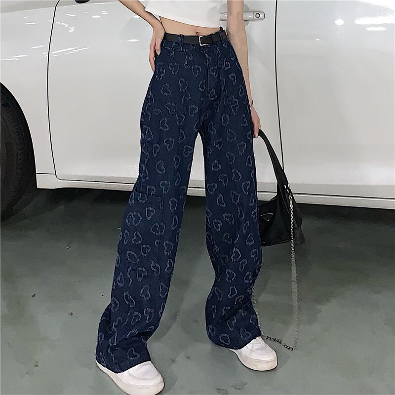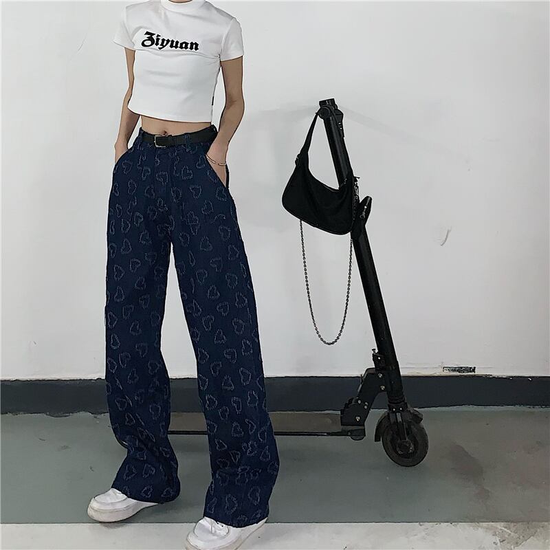 ジーンズ レディース夏服韓国ファッショントレンドスタンダードジャカードハイウェストウェスト薄手ルーズワイドレッグ レトロ ストリート 夏物 ワイドパンツ スタイル ウエスト Studios2850460334 | pLegLad Studios