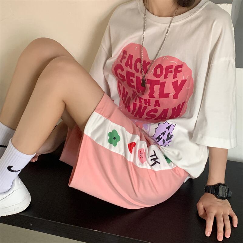 ショーツ レディース夏服韓国ファッショントレンドFlowerデザイン プリントルーズパンツ ピンク 夏物 フラワーデザイン スタイル Studios69325296037 | pLegLad Studios