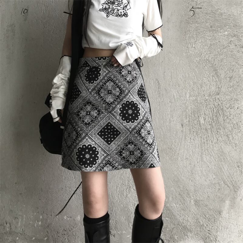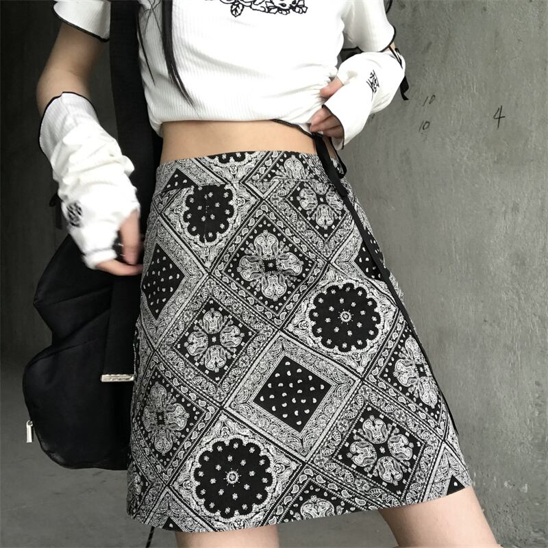 スカート レディース夏服韓国ファッショントレンドスタンダードダークFlowerデザイン ハイウェストウェスト薄手Aラインショート レトロ 夏物 フラワーデザイン スタイル ウエスト Studios65960068185 | pLegLad Studios