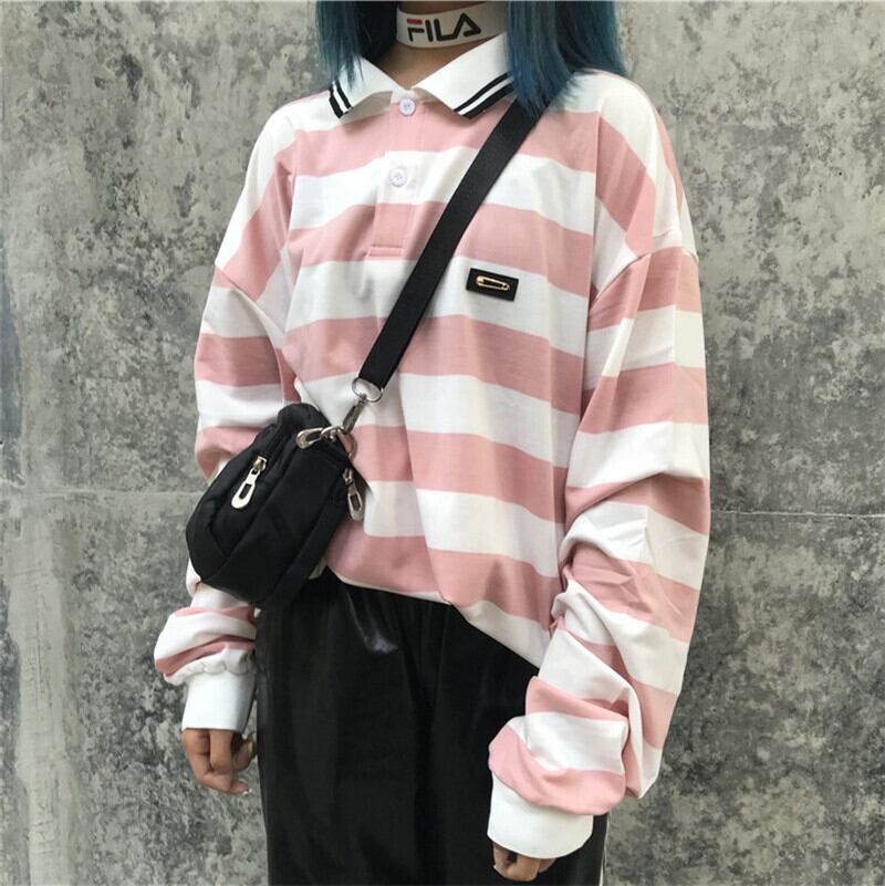 スプリング秋物韓国ファッションシャツ スタンダードストライプルーズ長袖スリーブTシャツ ロング レトロ 原宿 春物 オータム ボーイズ スタイル Studios99312904438 | pLegLad Studios