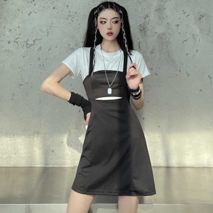 スカート レディース夏服韓国ファッショントレンドスタイルスタンダードハイウェストウェストワンピースゆったりTシャツ レトロ 大人ガーリー スウィート キュート カジュアル 夏物 ウエスト Studios50551015040 | pLegLad Studios