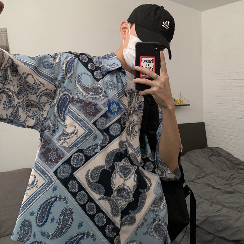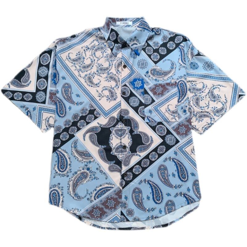 シャツ 夏服韓国ファッショントレンドスタンダードウェストプリント柄カジュアルメンズレディース レトロ ストリート 夏物 スタイル ウエスト Studios3109767485 | pLegLad Studios