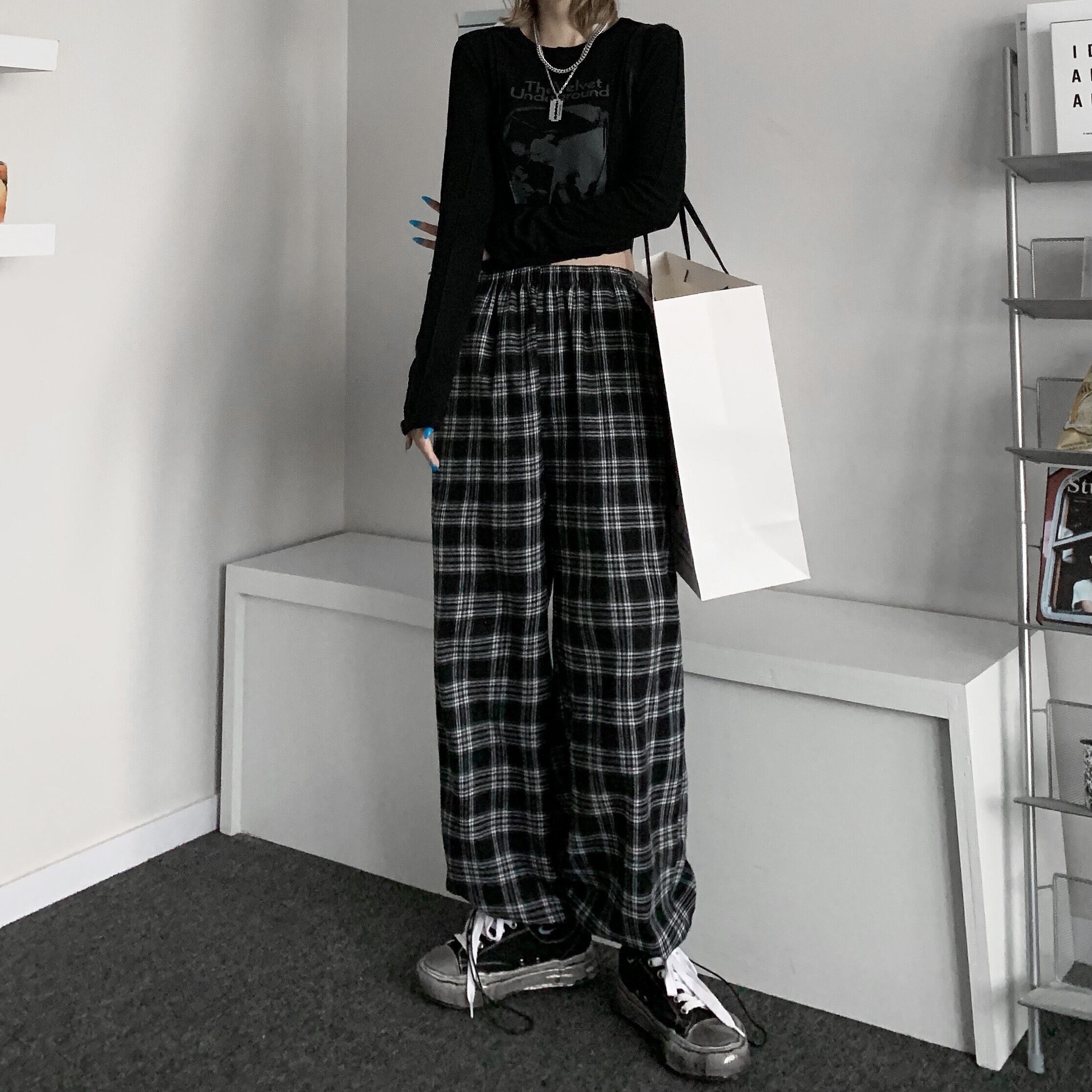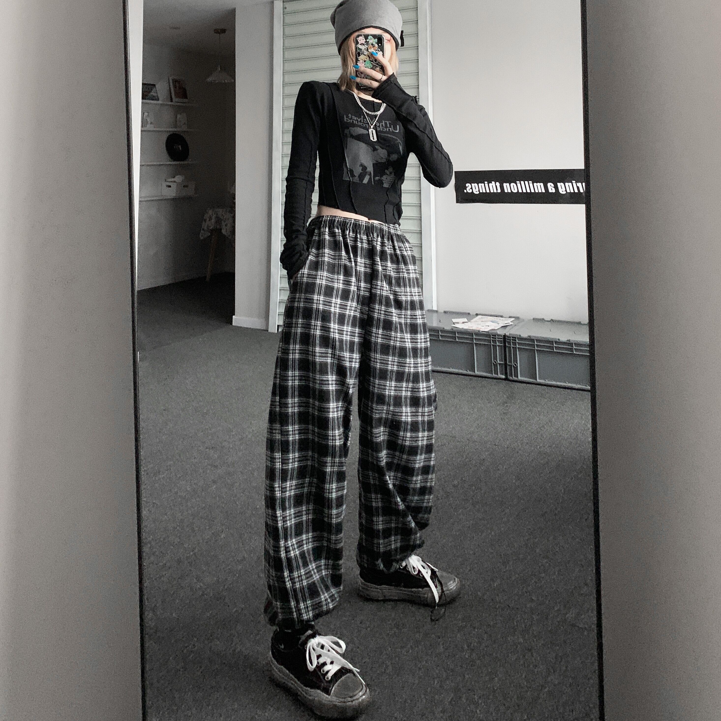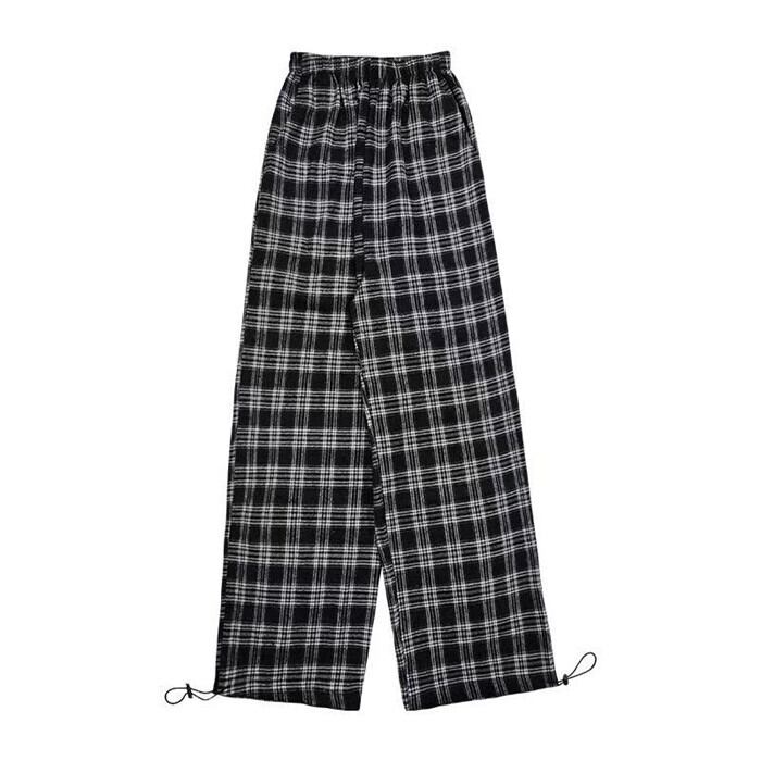 韓国ファッショントレンドスタンダード格子柄カジュアルパンツ ストレッチウェストルーズレギンス レトロ エラスティック 伸縮 スタイル ウエスト Studios22292705663 | pLegLad Studios