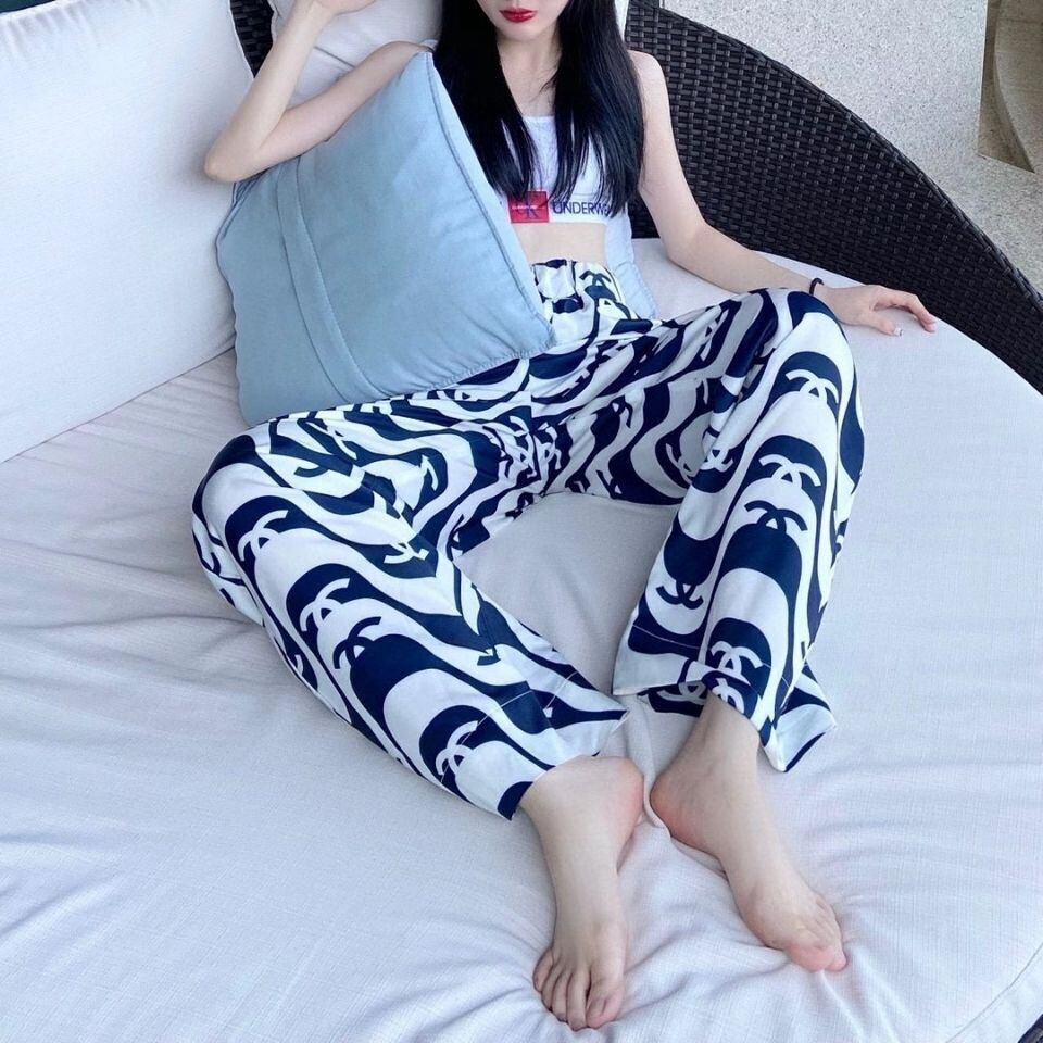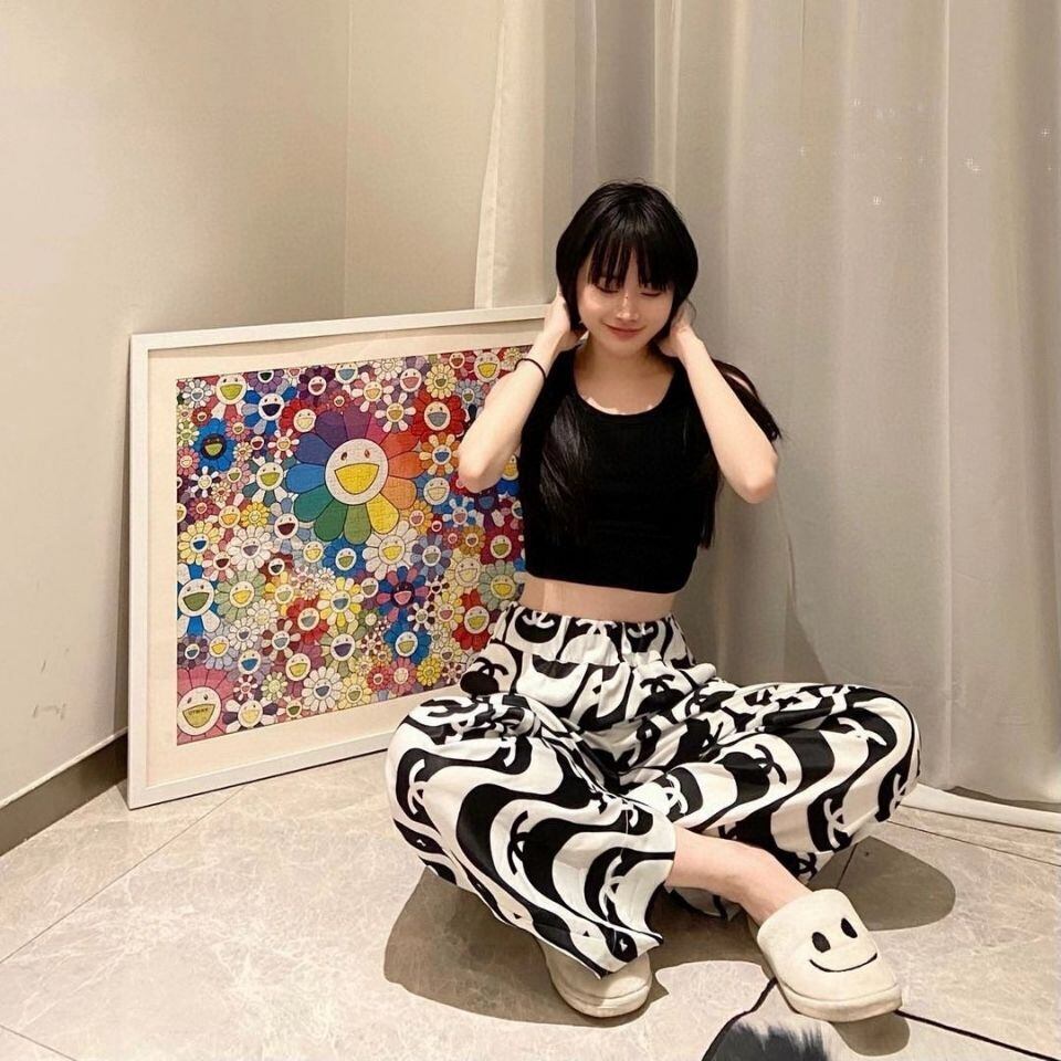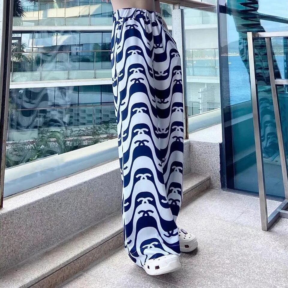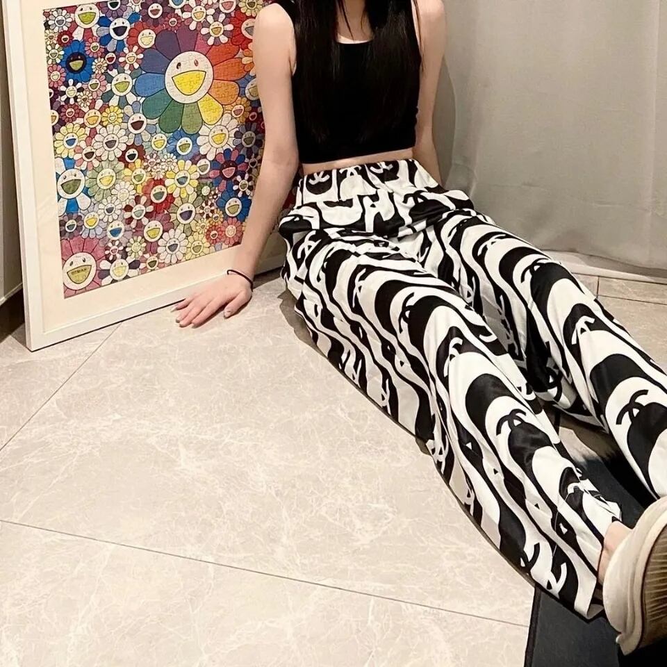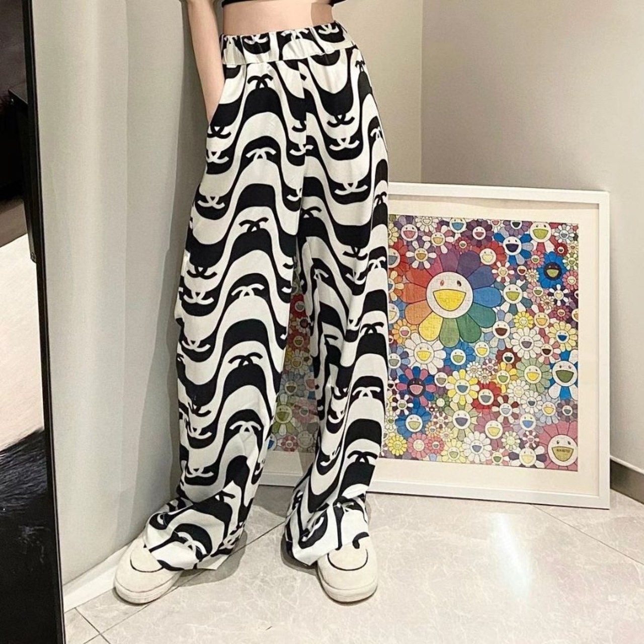 薄手カジュアルパンツ レディース夏服韓国ファッショントレンドスタイルプリント柄ルーズハイウェストウェストワイドレッグ 原宿 夏物 ワイドパンツ ウエスト Studios44497760386 | pLegLad Studios