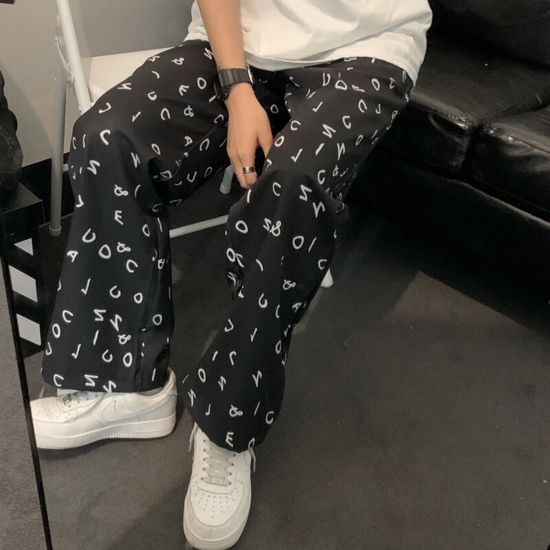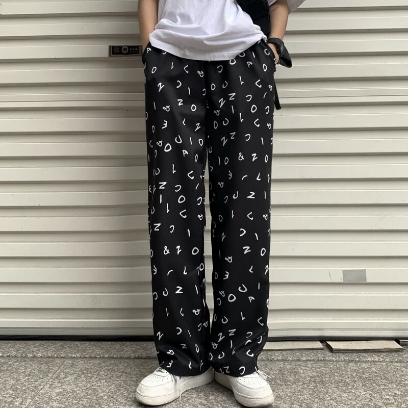 パンツ レディース夏服韓国ファッショントレンドダークプリントハイウェストウェストルーズワイドレッグ 夏物 ワイドパンツ スタイル ウエスト Studios15358069089 | pLegLad Studios