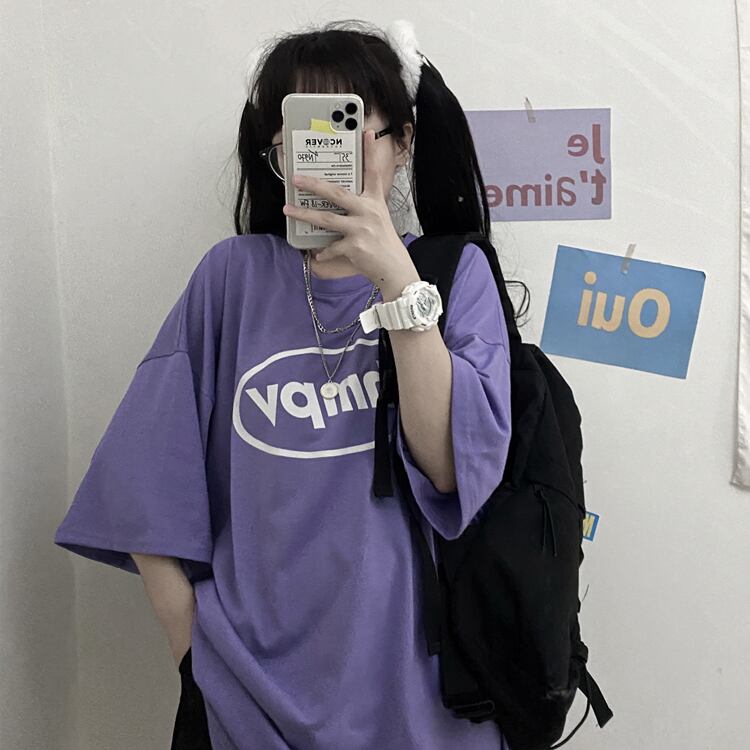 夏服韓国ファッショントレンドスタンダードプリントカジュアルルーズラウンドネックTシャツレディース レトロ 夏物 Oネック スタイル Studios50014387745 | pLegLad Studios